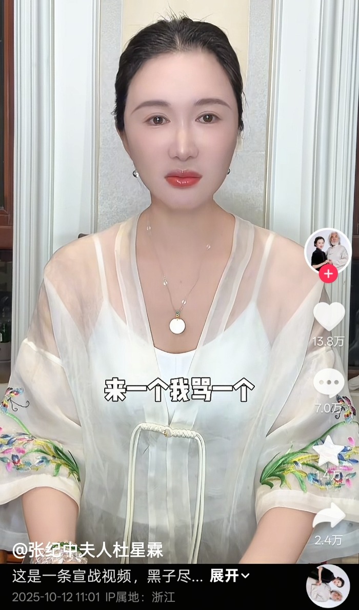 张纪中妻子发视频向“黑粉”宣战,事后账号停更并关闭私信