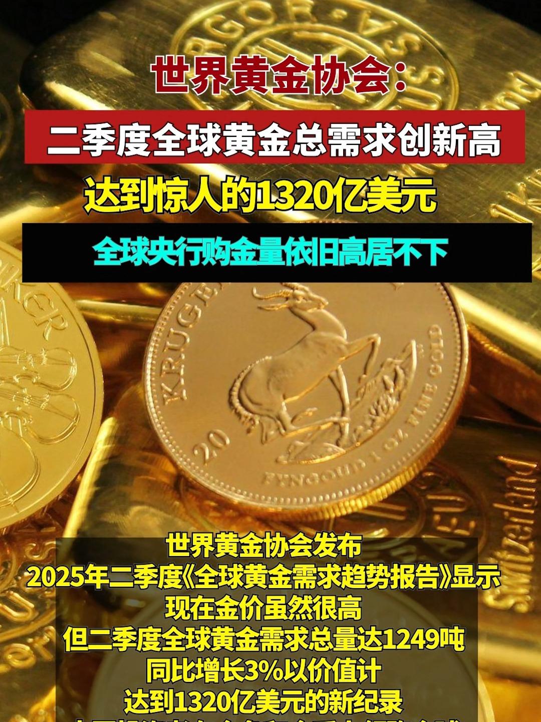 2025黄金需求大增 全球黄金需求在2025年第三季度创下1300吨的单季历史
