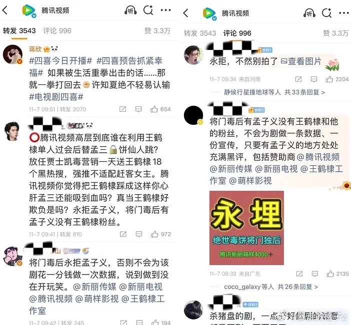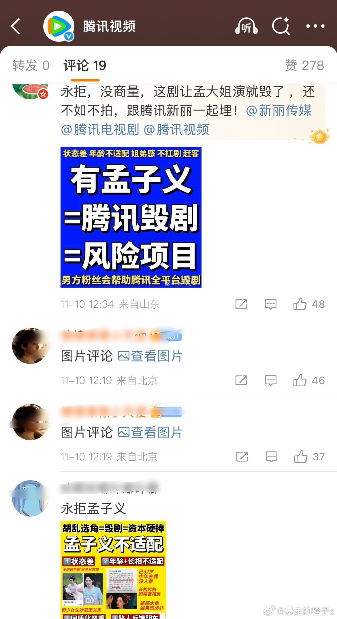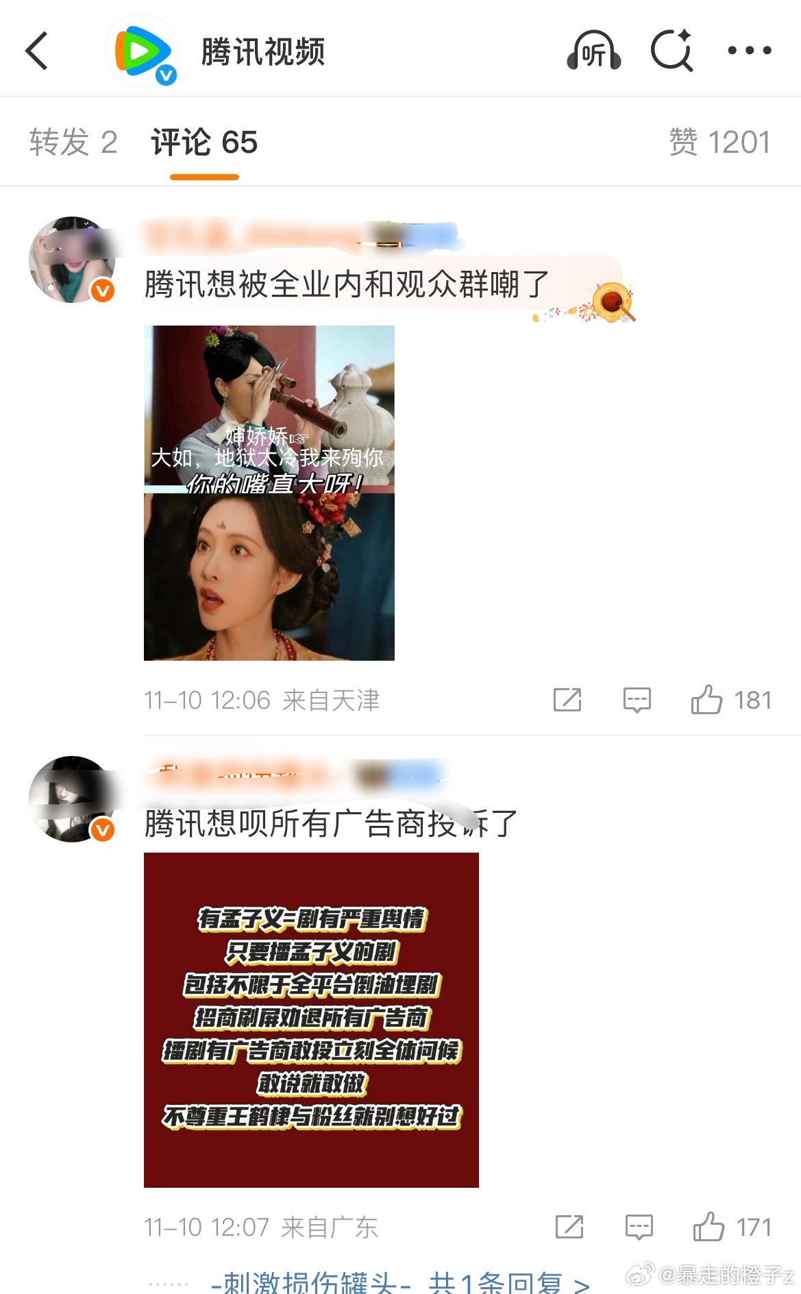 因为孟子义出演沈娇娇这一争论,腾讯视频官博下河堤粉丝清一色抵制评论。总结一下就是