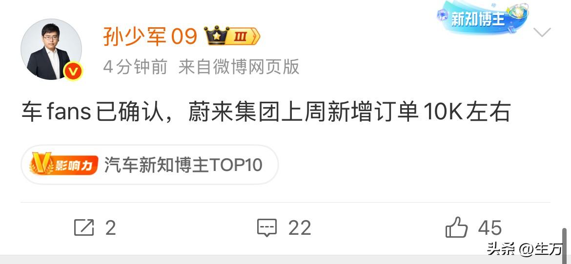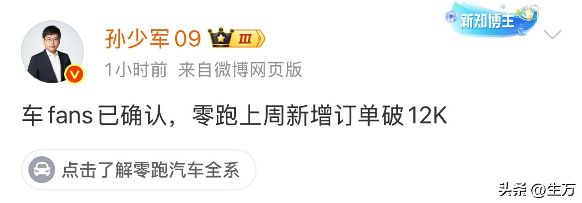 孙少军: 车fans已确认,鸿蒙智行上周新增订单12K,尊界交付继续新高 ! 就在刚才 ,孙少军又放出了上一周大家的销量,鸿蒙智行的销量与上上周差不多,尤其是尊界在上一周五百多的基础上,又往上面长了一点点! 另外一方面是零跑,上车订单是12,000多,而蔚来上周也破了10,000,同时小鹏也破了10,000! 也就是说,上一周的整体表现和上上周相比 其实还是在平稳的过渡,而且现在大家交车的数量,基本上慢慢地与卖出的数量保持平衡了! 当然,这几个企业当中,最应该感到欣喜的应该就是蔚来,他现在的数据从十月份过后就一直比较稳定,而且慢慢地开始有盈利的迹象了,第四季度还剩一个多月了,能不能赚到钱就看这50多天的表现了。 如果按照正常的这个发展趋势,基本上每个企业都还算不错的,可能也是国产新能源汽车各个品牌乐于看到的,大家都有自己比较稳定的用户,而且都已经累积了这么多年了,这个面还是比较让人欣慰的。