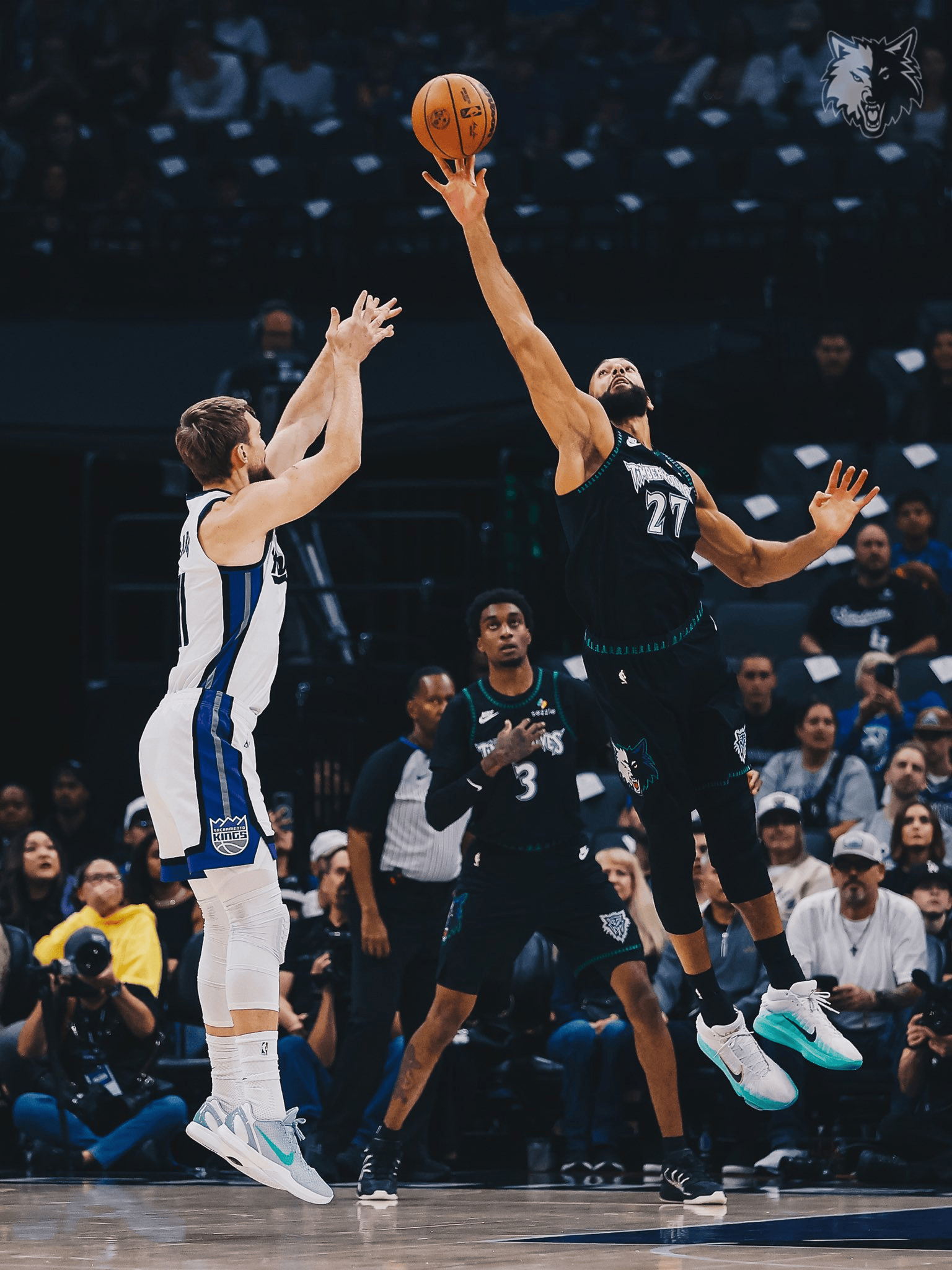 森林狼官方更新社媒,分享戈贝尔封盖瞬间照。