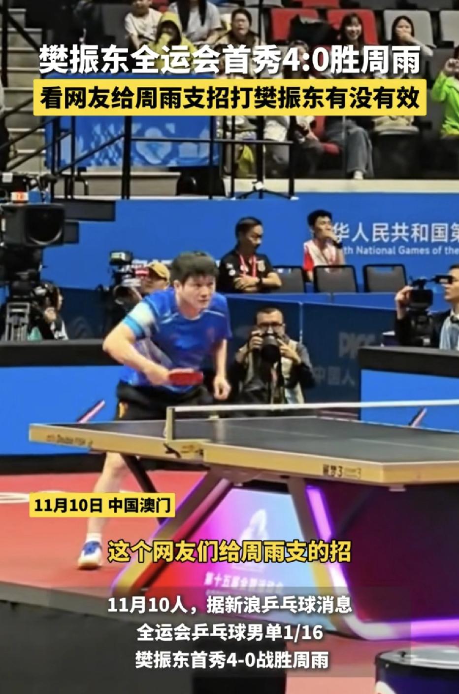 今天央视五套直播了樊振东和周雨的单打比赛,两人曾经是八一队的队友,关系非常好,他们曾经获得过全运会男双冠军,之前周雨说今天的比赛能赢一局都算胜利,可惜未能如愿,德国归来的樊振东状态拉满,4:0完胜周雨,两人时隔多年再重逢,一个是巅峰领军者的稳,一个是老大哥的拼,给观众奉献了一场精彩的比赛,输赢之外,这份跨越多年的赛场情谊让人铭记。