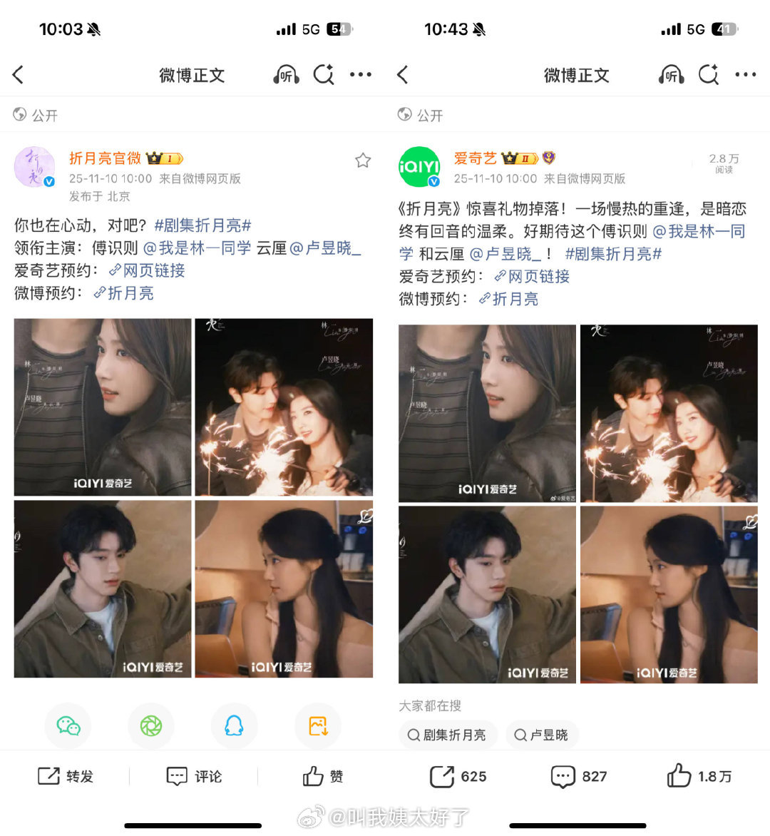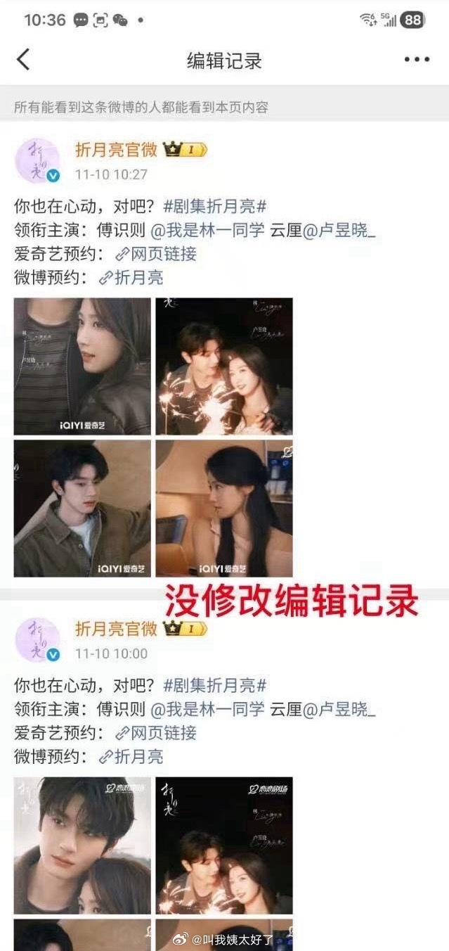 《折月亮》男女主两家也都在维权,两家都觉得官方预览图没有出现正主正脸。