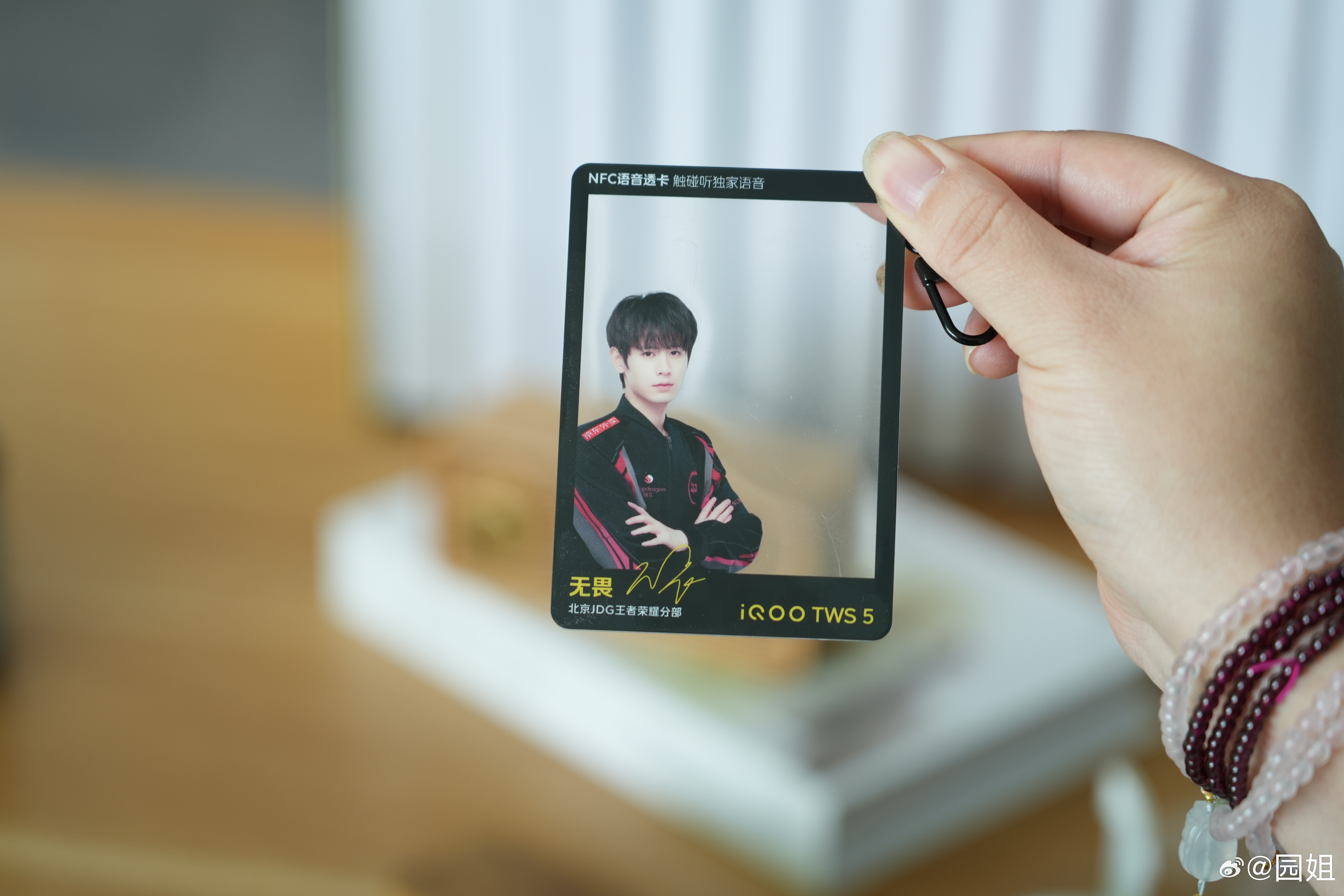 iQOO TWS5无畏限定礼盒,还别说挺好看的,带了一个耳机保护壳,挂件和挂绳,图二的透卡用NFC手机刷一下还有无畏的语音,情绪价值拉满了[哆啦A梦吃惊]
