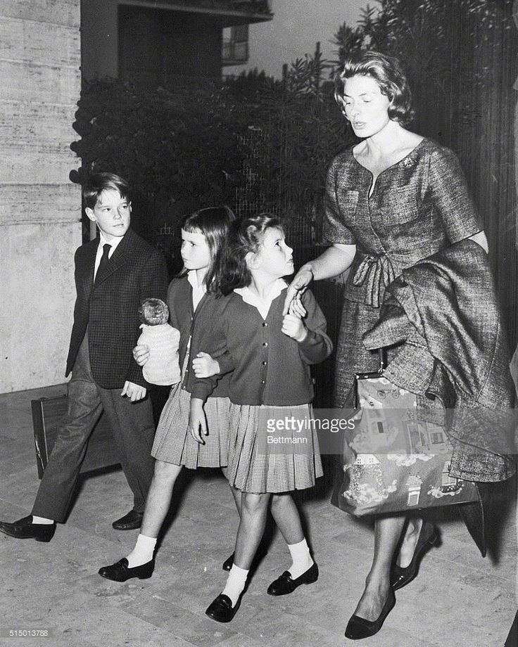褒曼随后移居意大利,1950年与罗塞里尼结婚,1952年英格丽·褒曼生下一对双胞胎女儿伊莎贝拉·罗西里尼与伊斯塔·英格丽·罗西里尼。前面还生了一个男孩罗伯托·费德里科·罗塞里尼。1958年,褒曼和罗伯托·罗西里尼正式离婚。离婚后,褒曼搬到伦敦生活,而孩子们大多在罗马由一位女管家照顾成长,他们与母亲只有偶尔见面。1958年12月21日,英格丽·褒曼与从事戏剧演出事业的瑞典人拉尔斯·施密特结婚。在她的演艺生涯中,英格丽·褒曼共获得过三次奥斯卡奖。