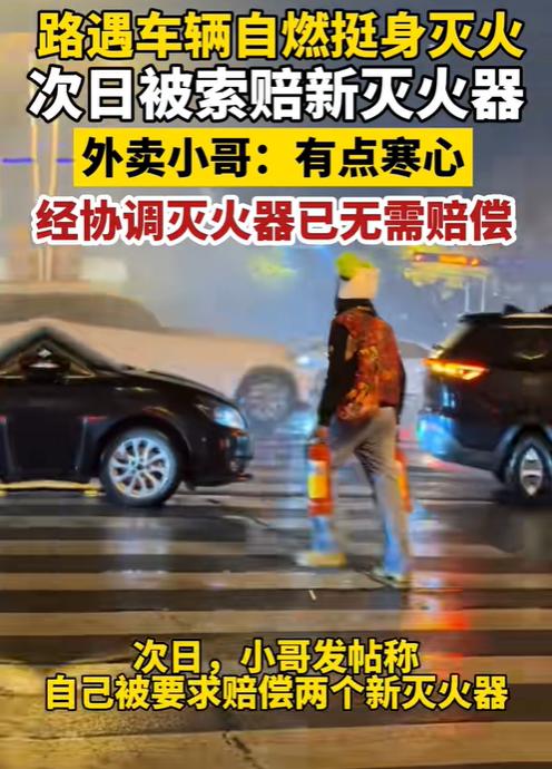 近日报道,山东泰安,一车辆发生自燃,外卖小哥从附近警务室借来灭火器灭火,不料次日,被索赔2个新的灭火器!小哥:有点寒心!网友:“要赔也是起火车主赔,因为起火车是受益方,外卖小哥是施救方!” “喂,你得赔两个新的灭火器。”外卖员吴先生怎么都没想到,就在前一天,他还是个救火英雄,第二天却成了“欠债”的人。 事情的经过并不复杂,吴先生在送餐过程中,看见路边有一辆发生了自燃,尽管手里还有五个单子要送,他还是停下了电瓶车,冲进警务室,拎起灭火器就奔向火场。火灭了,他却因为耽误了送餐,被平台扣了100多块钱。 如果故事到这里结束,人们最多感慨一句“好人难当”。但第二天“索赔灭火器”这个操作,真正让这件事变了味,也点燃了大家的怒火。 网友们几乎一边倒地支持小哥:“要赔也轮不到他赔!”“这么搞,以后谁还敢帮忙?”在巨大的舆论关注下,事情很快解决了:小哥不用赔了,平台也在帮他申诉取消罚款。 但这件事却暴露了很多问题。首先,那个要求赔偿的人,他可能觉得自己挺有理:公家的东西用掉了,就得补上。他脑子里只认这条死理,却忘了眼前这个人是刚刚做了好事的。这种“只管东西,不管人情”的做法,其实并不少见,也因此凉了很多想做好事的人的心。 其次,它让人们看到,大家对“好人”的要求有时候太高了。好像英雄就不能计较得失,必须完美无缺。当小哥说出自己被罚款时,可能还有人觉得他不够“无私”。可英雄也是普通人,也要养家糊口。 他们的可贵,不是因为他们毫无损失,而是明知有损失还愿意站出来。大家不该让好人做了好事还得自己扛下所有委屈,这不公平。 最重要的是,它暴露了一个制度上的漏洞:对好人的保障还不够。为什么一件明明占理的事,非要闹到网上、引起公愤才能解决?如果没有大家帮忙发声,外卖小哥是不是就真得自己掏钱赔那两个灭火器了? 这样的事,不能总靠“上热搜”来解决问题。而是需要实实在在的规矩:比如,明确规定因为救人造成的损失该由谁补偿;公共的灭火器用在救火上,该怎么补充,而不是找救人的人要。必须要让好人有好报成为一种可靠的保障,而不是碰运气的事。 值得欣慰的是,在这件事里也看到了温暖的一面。那么多陌生人为小哥发声,这种群众的力量是强大的。而那位小哥自己也说了,以后遇到这种事,他还会管。 这说明,真正的善良是发自内心的,不会因为一两次委屈就消失。至于整个社会的责任,就是去保护好这份善良,而不是用各种条条框框和冷漠的态度去考验它、消耗它。 一个灭火器值不了几个钱,但它这次称出的,是大家该用什么样的态度去对待那些挺身而出的普通人。毕竟,只有当英雄不需要为自己的善行倒贴钱、受委屈时,我们这个社会,才真正对得起他们的那份勇敢。 信源: 九派新闻2025年11月09日——外卖员为救火致超时赔100:不后悔,这种事让我碰见就一定会管 文|一阳 编辑|史叔