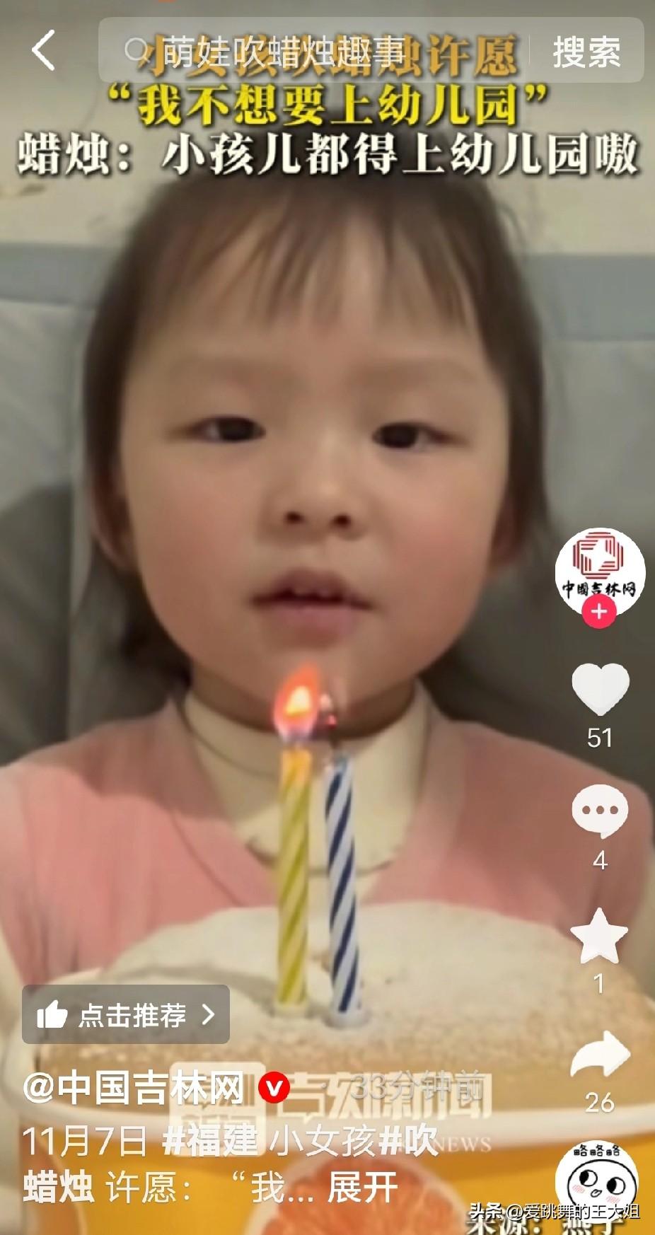 小女孩火上新华社了!福建,一个女孩过生日许愿:我不想要上幼儿园!说完之后就吹蜡烛,可是万万没想到一两秒钟之后...蜡烛神奇的重新燃了起来,女孩儿楞了一下,重新又吹,结果又燃起来了,女孩就反复一直吹。网友:我就是个几十块的蛋糕,你许这么大愿望,我怎么敢满足你。 小姑娘鼓着腮帮子第三次吹向蜡烛,火苗只是弯了弯腰又挺直了。她急得小手拍打桌面,带着哭腔喊“它欺负我”,全家举着手机笑成一团。这段视频在网络上病毒式传播,网友调侃蜡烛成了“幼儿园守护神”,还有妈妈晒出同款经历——孩子许愿不想写作业,蜡烛硬是复燃了四次。这场生日宴意外变成了全民欢乐现场,蛋糕店老板留言提醒:“现在卖的趣味蜡烛很多是镁芯材质,专门设计了复燃效果增加气氛,真不是显灵。” 蜡烛反复复燃背后藏着简单的科学原理。普通蜡烛依靠石蜡蒸汽燃烧,而市面上的魔术蜡烛在烛芯里掺了镁粉,吹灭的瞬间高温烛芯点燃镁粉,镁粉又引燃残留的石蜡蒸汽,形成“灭不掉”的趣味效果。类似现象也存在于普通蜡烛中,熄灭后冒出的白烟就是石蜡蒸汽,遇到明火即可复燃。孩子眼中玄妙的“魔法”,其实是物质遇氧燃烧的连锁反应。 这场喜剧折射出幼儿分离焦虑的普遍性。三岁左右的孩子正处于“衣角期”,对父母强烈依恋,陌生环境容易触发恐惧。研究显示99%的孩子存在不同程度的入园焦虑,有的会生理性抗拒到失眠腹泻。视频里女孩用许愿表达抗拒,正是用童话思维解决现实压力的典型表现——她真的相信生日魔法能改变生活规则。 更深层的问题在于成人世界对儿童情绪的消解方式。家长笑着记录“人蜡大战”时,是否错过了读懂孩子恐惧的机会?把焦虑包装成段子固然能缓解尴尬,但幼儿需要的是共情而非娱乐化处理。就像有家长用“老师把你关小黑屋”恐吓孩子,反而强化了对幼儿园的恐惧。当孩子说“不想上学”,他们可能是在呼救:我害怕分离、不会自己穿衣服、被小朋友抢了玩具。 破解入园焦虑需要比吹灭魔术蜡烛更多的耐心。聪明的父母会把幼儿园预告片拍成连续剧:提前带孩子参观教室,用布偶演练社交场景,甚至把老师请到家里做客。更重要的是把“不要哭”换成“妈妈五点来接你”,用具体的承诺代替空洞的安慰。就像蜡烛需要氧气才能燃烧,孩子的安全感也建立在可预测的规则上。 这段视频最动人的不是喜剧效果,而是成人愿意蹲下来解读童心的姿态。当科学解释邂逅童年魔法,我们既不必用“不灵验”戳破幻想,也不能放任焦虑蔓延。或许最好的教育就在那簇吹不灭的火苗里——告诉孩子,就像蜡烛总要燃烧,成长难免会遇到困难,但每次尝试吹灭它的勇气,都比逃避更接近光明。 各位读者你们怎么看?欢迎在评论区讨论。