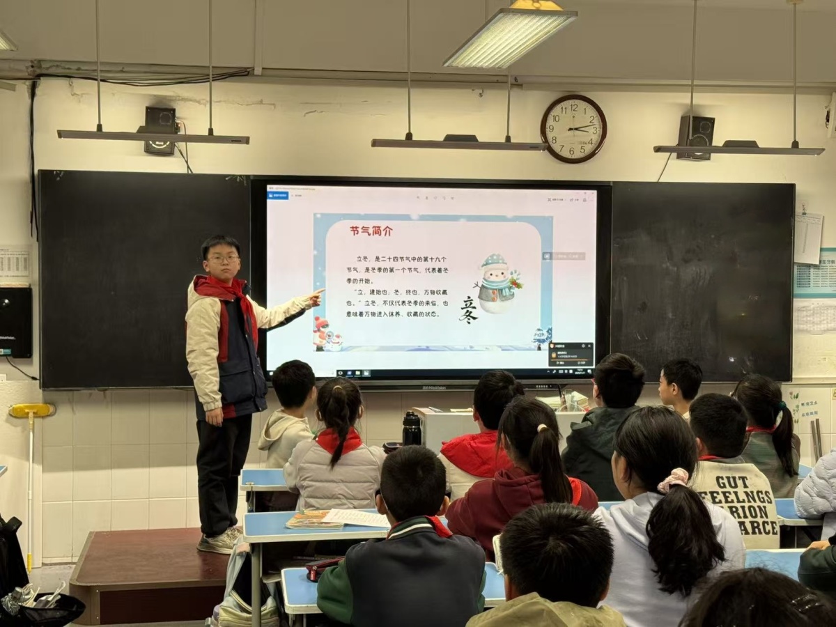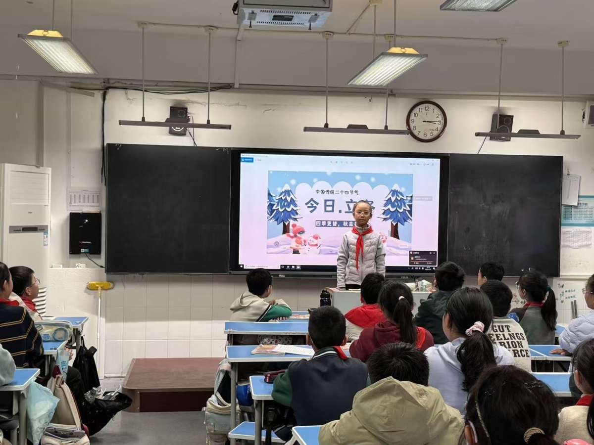 活动伊始,队员们通过视频了解立冬的基本概念。随后,中队辅导员系统讲解立冬的起源、民俗及“三候”知识,从古籍记载到现代传承,娓娓道来,引导队员们深入理解节气文化的丰富内涵。