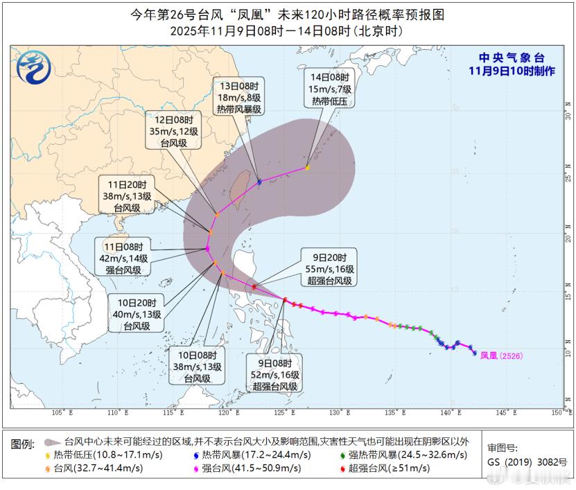 今天夜间,“凤凰”预计在菲律宾吕宋岛东部沿海登陆,随后进入南海并趋向台湾岛西南部沿海。