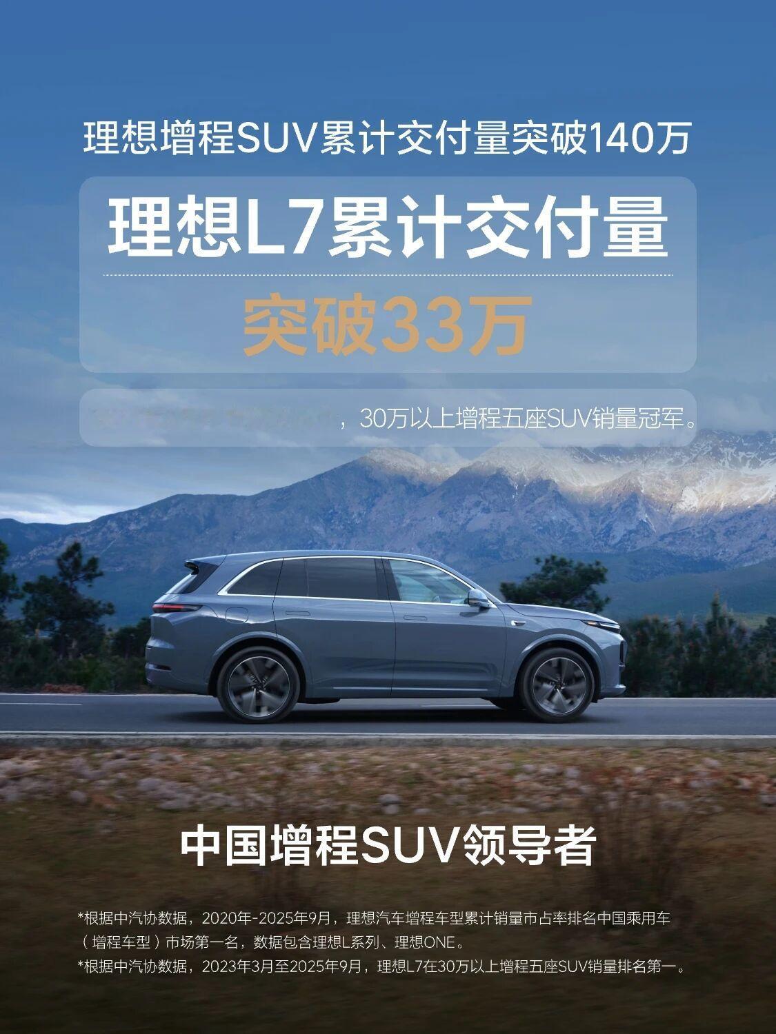 理想汽车增程 SUV 累计交付 140 万,其中最大功臣是 L6 和 L7,分别突破 33 万辆,最近我刚说想拍一下理想 L7 的用户采访,刚好交付量出来了,可以顺势推舟给大家讲讲背后的故事。理想汽车