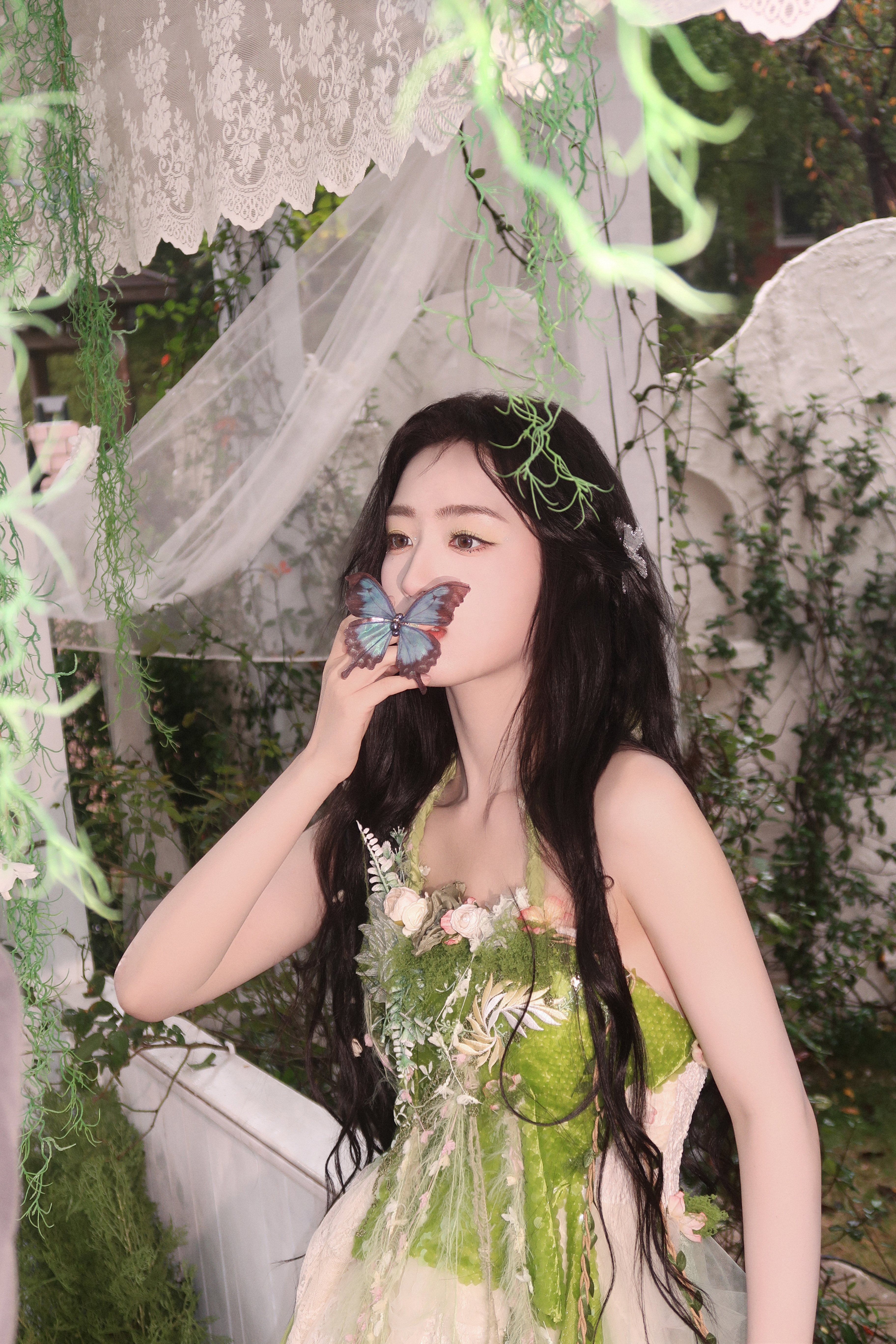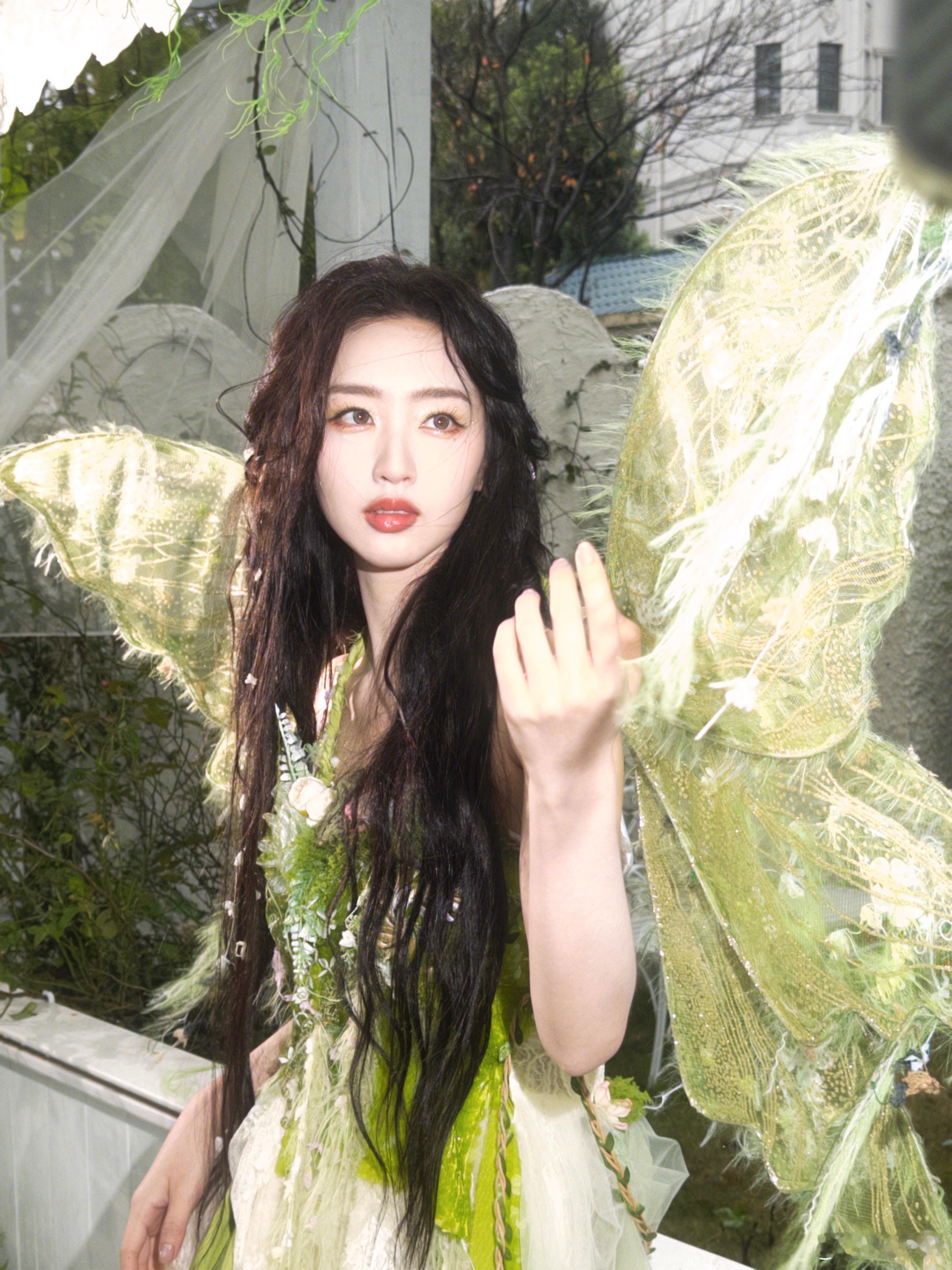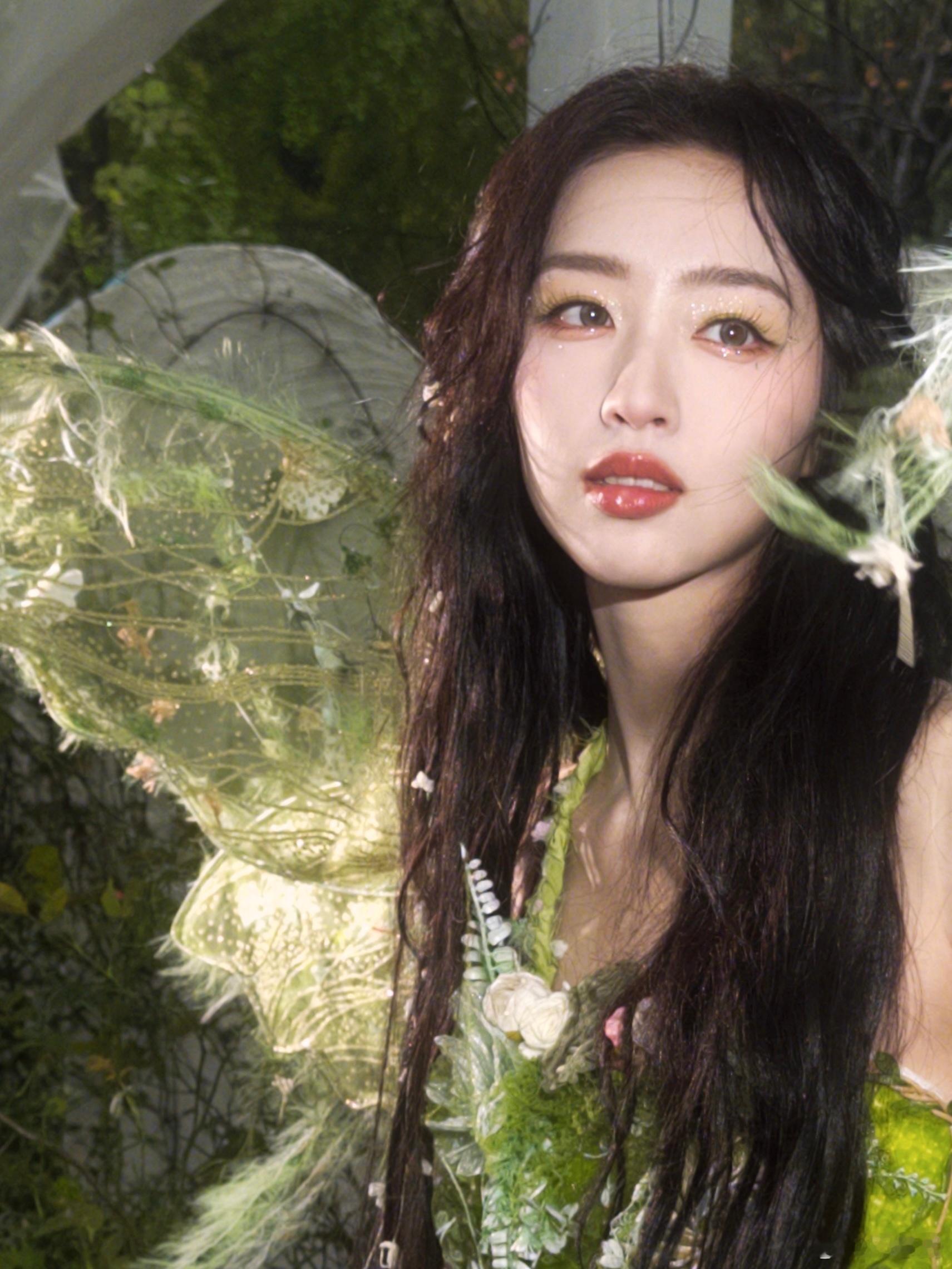 邓恩熙是精灵本灵吧!薄纱翅膀配丝绸绿裙,完全绿野仙踪里跑出来的灵气少女啊,妹宝今天真的好美啊! 双11疯狂好六夜