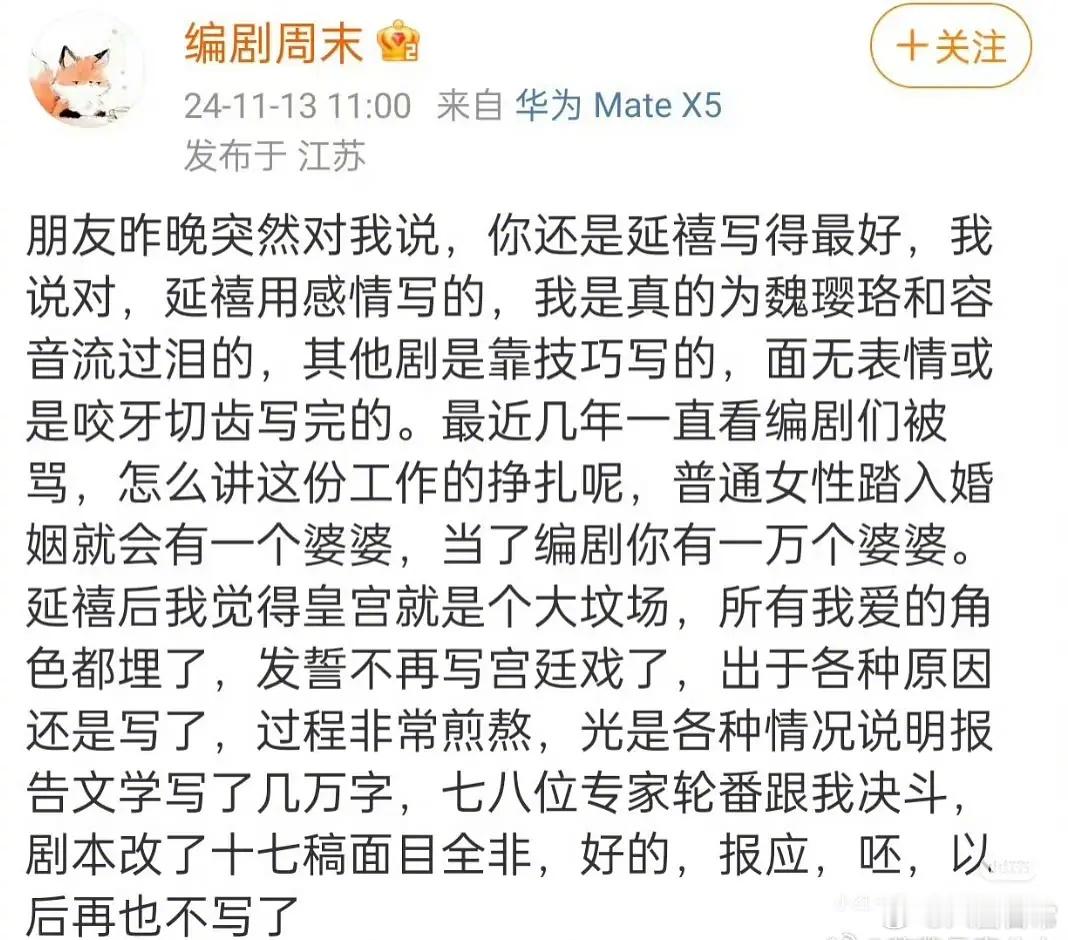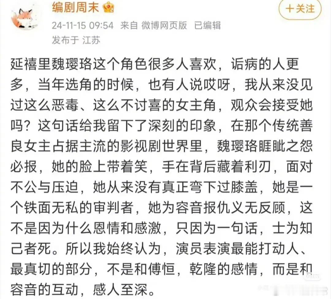 原来延禧的编剧非常不满意魏璎珞爱上皇上这个结局