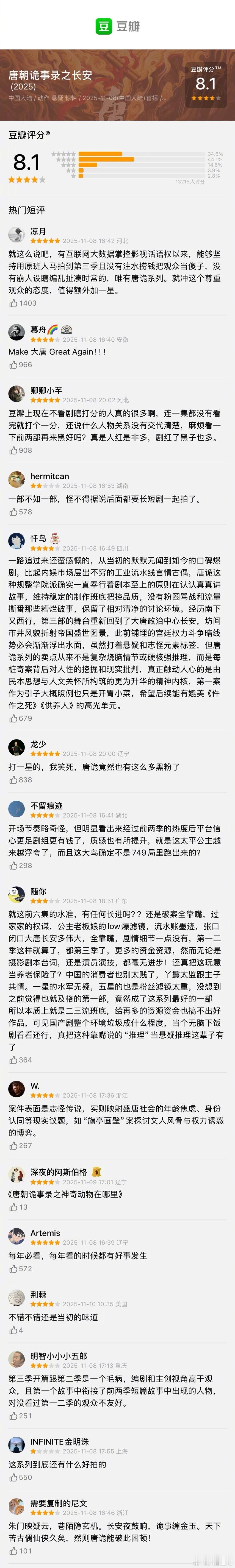 杨旭文、杨志刚《唐朝诡事录之长安》豆瓣开分8.1分