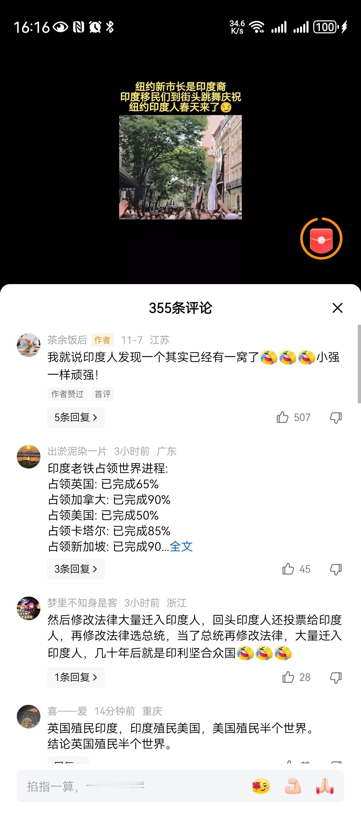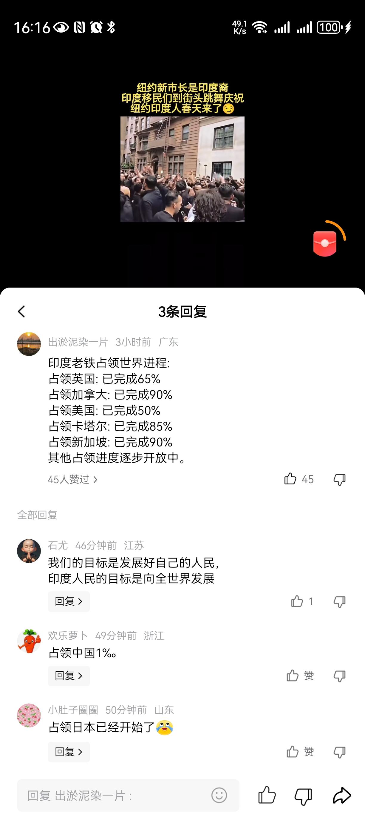 印度称第二没人敢称第一[笑哭][笑哭][笑哭] 印度老铁要占领了世界, 我们的眼界是发展自己祖国, 印度人的眼界是要占领全世界。。 英国首相,美国副总统及夫人 ,新加坡总统。。。 英国,加拿大,卡塔尔,新加坡,日本。。。 世界最大最发达城市纽约市长也是印度人。。。印度人地位 不能不服气, 要反思。。。 一堆印度人在国外是一窝, 而且在外面只会帮印度。。。 一堆中国人在国外是一。。。。