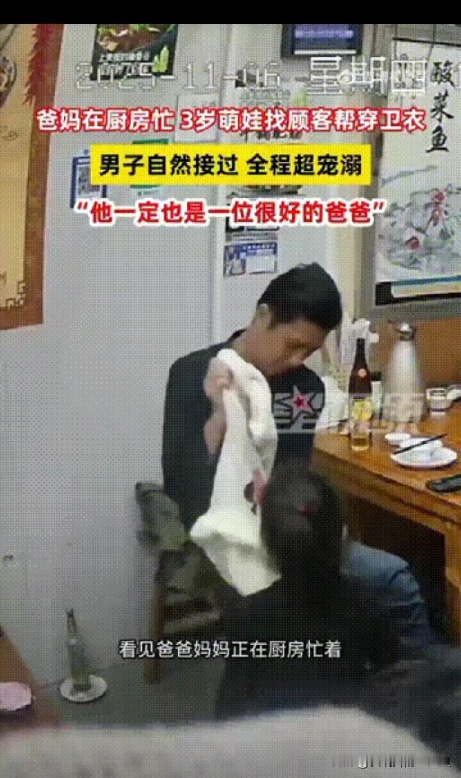 浙江台州一家餐馆内,老板夫妻正在厨房忙碌,3岁的女儿想要穿卫衣,却怎么也穿不上,眼看爸爸妈妈正在忙工作,于是她走到一位顾客面前,请他帮自己穿衣服,顾客自然接过衣服,全程宠溺地看着她,非常细心认真地帮她穿好衣服,事后女儿向妈妈炫耀顾客帮自己穿衣服,妈妈也十分感谢顾客,觉得他一定是一位好爸爸。 监控画面里那个胖乎乎的小手举起卫衣的瞬间,大哥愣了一下马上露出慈父般的笑容,那种不假思索的接纳比任何摆拍都动人。他蹲下来捏着卫衣领口左右打量,把帽子整理得端端正正,手指笨拙却耐心地穿过层层布料寻找小女孩的胳膊,仿佛在完成什么神圣仪式。后厨炒菜的轰鸣声、大堂碗碟碰撞声都成了默片背景,只有女孩仰头时信任的眼神和顾客额头细密的汗珠在说话——这让我想起河南那对包子铺夫妇,凌晨三点把只穿尿不湿的流浪女童裹进棉袄搂在怀里的温度,陌生人之间突然建立的羁绊,像黑夜里自动亮起的声控灯。 但镜头外的故事或许更复杂。当女孩骄傲地向妈妈展示“客人帮我穿的”新技能时,父母心里除了感激是否也有后怕?去年郑州夜市那个衣衫不整跑进饭店的二十岁姑娘,女老板给她披外套时,监控里男顾客们齐刷刷低头的尊重让人温暖,可后续调查发现姑娘存在智力缺陷且最终失踪的结局,又像根刺扎在美好叙事里。我们总强调“远亲不如近邻”的温情,却很少谈论儿童自我保护教育的边界——该不该教三岁孩子区分可求助的“熟客”与真正的陌生人?浙江丽水那个给单薄小女孩披上棉袄后报警的外卖小哥,或许展示了更周全的善意:既给予即时温暖,又守护最终安全。 社交媒体把这些暖心片段送上热搜时,某种道德压力也在无形中扩散。就像救助女童的河南夫妇把5000元奖金全换成肉包送环卫工,善行被嘉奖后反而要承担更重的榜样包袱。如果当时顾客拒绝帮忙,或者父母因担心安全而制止孩子找陌生人,会不会被舆论批评“冷漠”?其实真正的社区信任,不该依赖个体透支风险去成全,而需要实实在在的支撑体系。开平市儿童发展规划里提到要建立“儿童优先的社会风尚”,但政策术语背后,是公共场所更多母婴室、社区巡逻员对独行孩子的关注、学校系统安全教育——这些沉默的保障,比偶然的暖心瞬间更能托住日常安全。 那个接过卫衣的顾客可能不知道,他弯腰的三十秒正在参与一场宏大社会实验。当我们赞美孩子的“社牛”属性时,也该听见另一种声音:为什么默认儿童必须主动求助才能获得帮助?矿区儿童发展方案强调“创建有利于儿童成长的安全环境”,或许理想的社区该像动画片里的海底村庄,所有珊瑚礁都设计成圆角,每条小鱼游过时自动亮起柔光——善意不该是幸运抽奖,而是渗透在公共设施间距、监控摄像头角度、甚至路人条件反射里的默认设置。 各位读者你们怎么看?欢迎在评论区讨论。