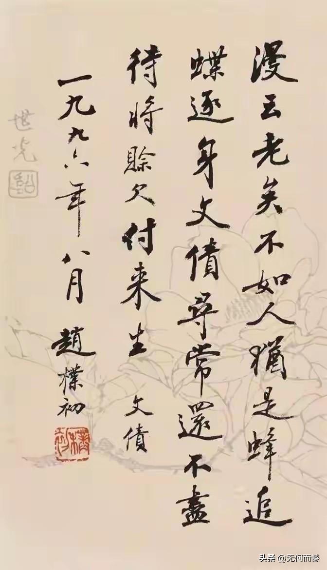 赵朴初先生的书法和学问,均达到了一定的高度,最早知道他的时候,还是缘于他的书法,记得30多年前到铁岭龙首山游玩,看到了他写的匾额,记得是“龙首千秋”这四个字,写的非常的漂亮,因为喜欢他的字,所以就开始了解他个人的一些情况,越了解越觉得他非常了不起,非常的让人佩服,他是一个文化底蕴非常厚重的人,文化造诣特别高。赵先生生于1907年,2000年离世,享年93岁,每当看到他书法的时候,就会怀念他!