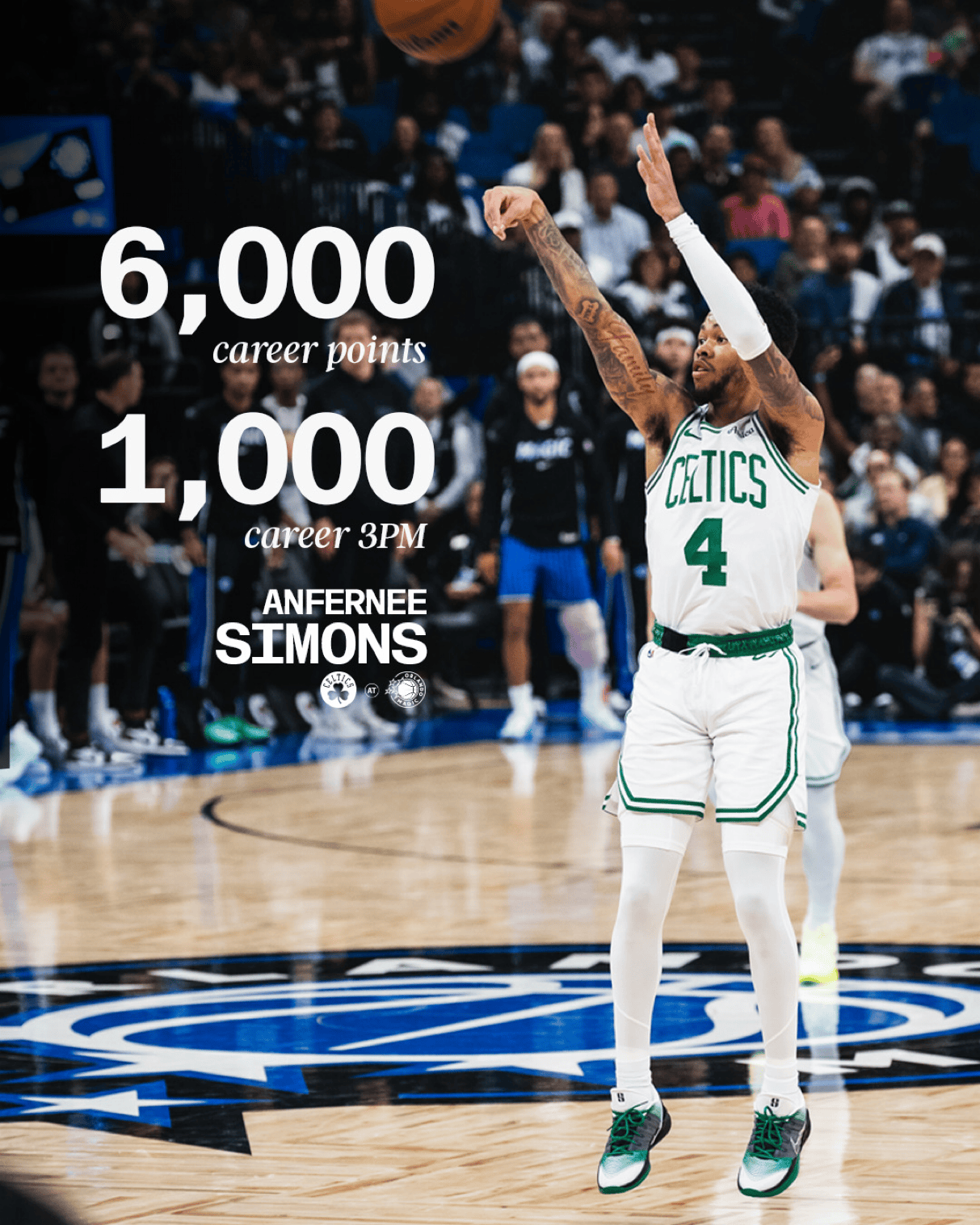 总得分超6000!凯尔特人官媒晒西蒙斯海报照:美好的一天