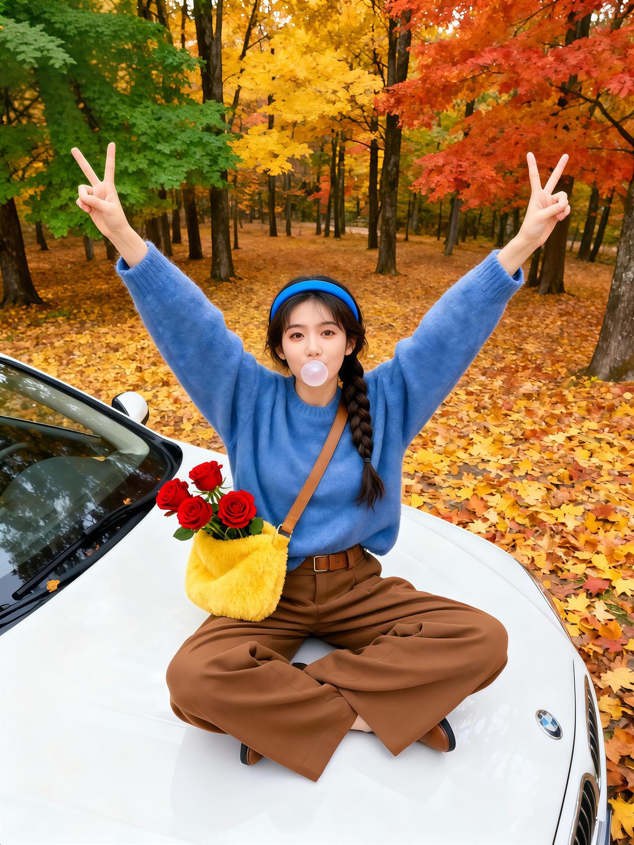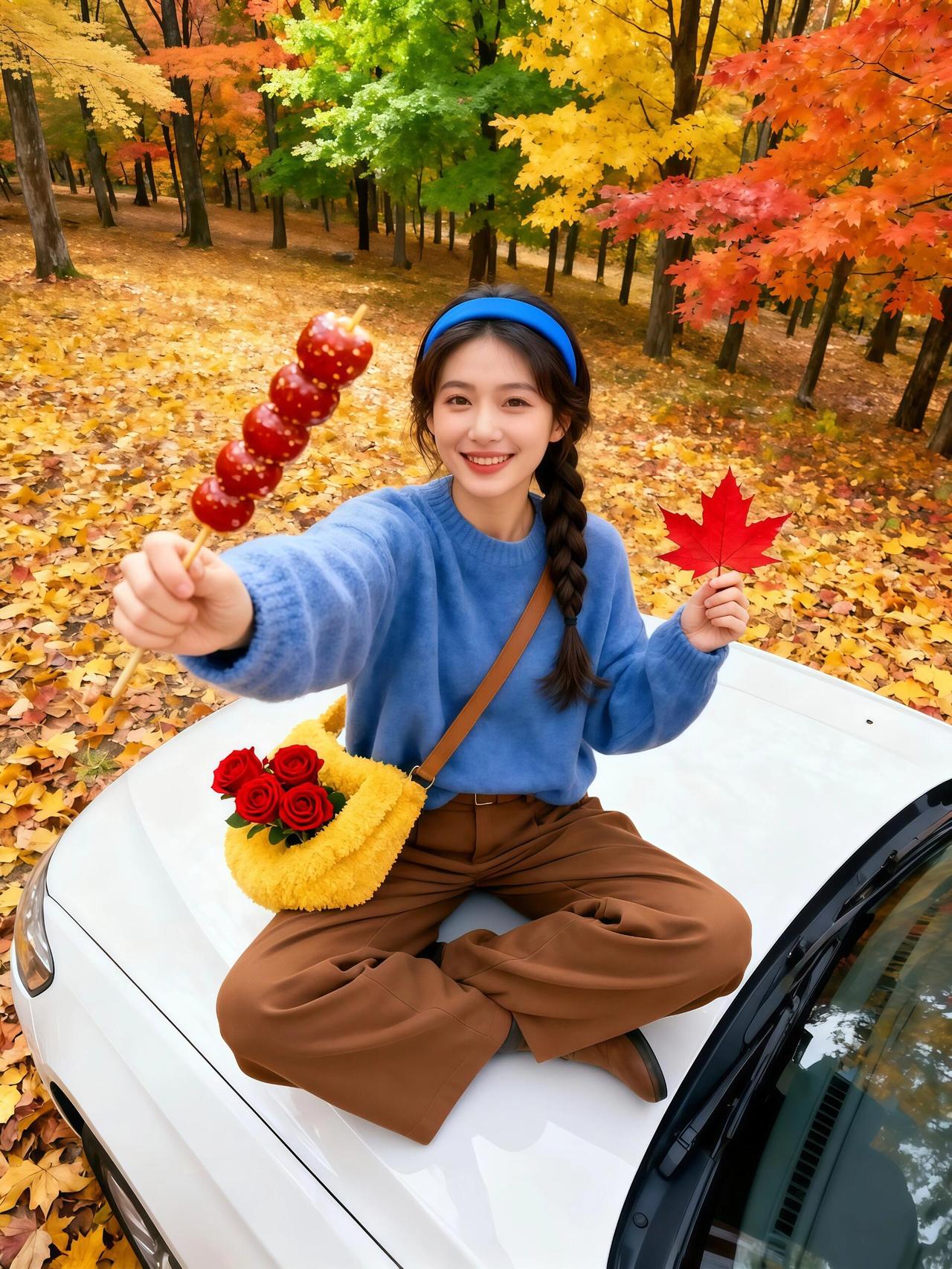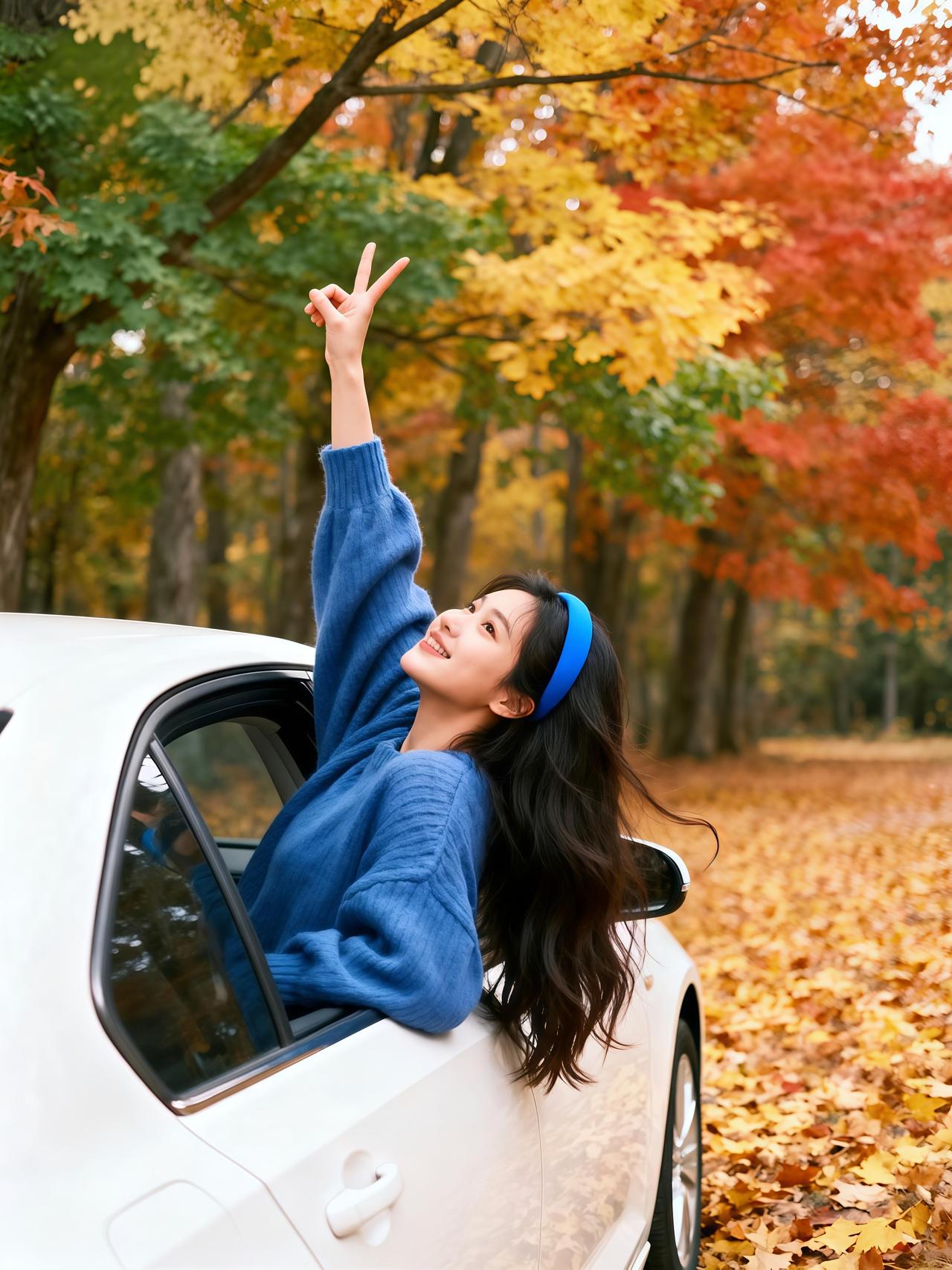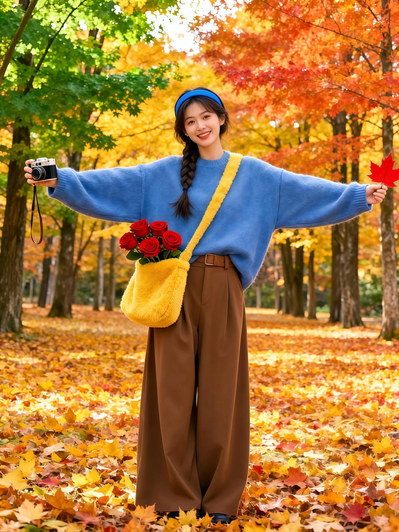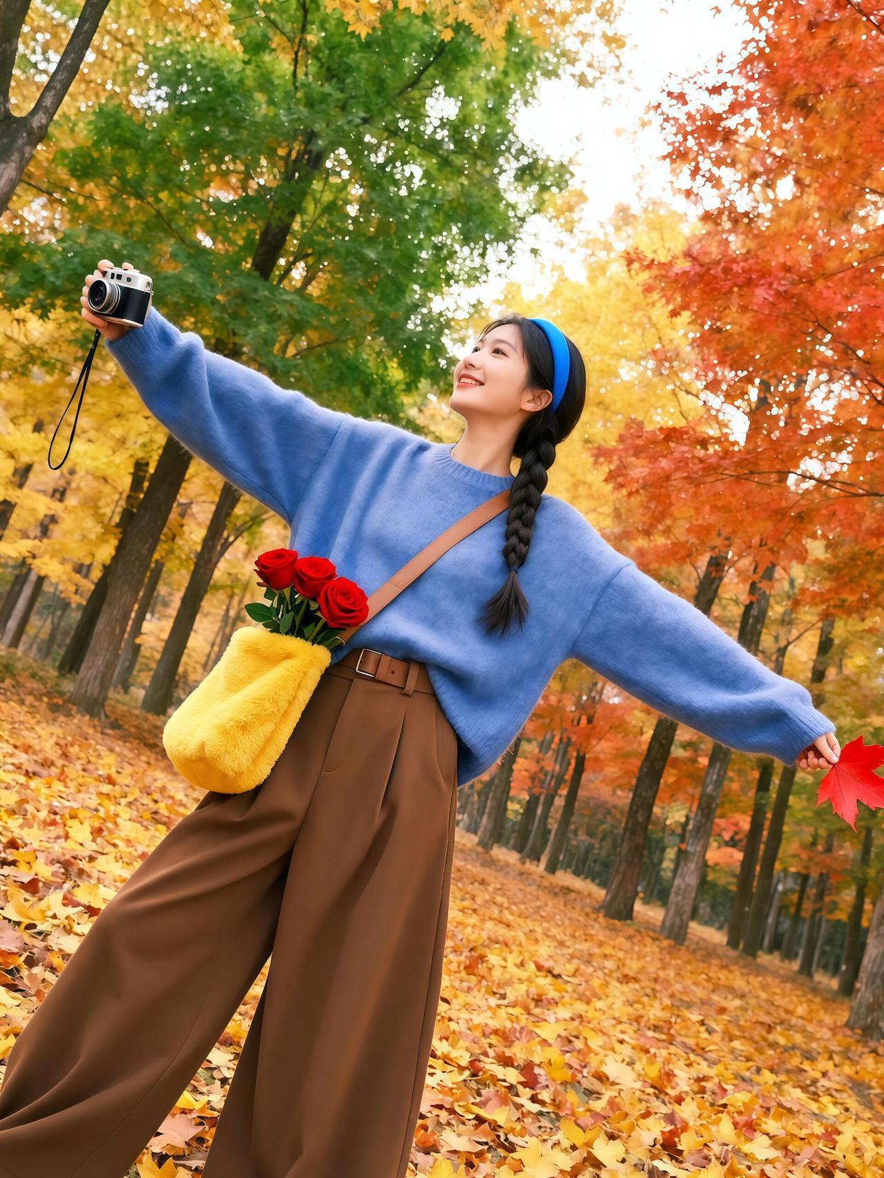 秋日森林中的自由瞬间