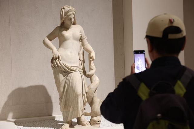 在此次展览中,观众还可以看到图拉真皇帝、哈德良皇帝、马可·奥勒留皇帝等罗马统治者的半身像。其中,哈德良是第一位留胡子的罗马皇帝,现场展出的半身像所雕刻的卷曲发型和浓密胡须是典型的哈德良皇帝风格。在位期间,他修建了著名的哈德良长城、罗马万神殿以及蒂沃利别墅,此次展览中展出的许多雕像都来自这个别墅。“对于国内的观众,尤其是上海观众来说,他们对希腊、罗马的雕塑一点都不陌生。但往往大家更了解希腊,现在是时候多了解一些罗马了。”展览学术主持郭长刚告诉记者,他最推荐的藏品便是罗马“五贤帝”雕像,“从图拉真、哈德良到马可·奥勒留,那时候的国家治理也充满了智慧。看这个展的时候,观众既可以欣赏精美的雕像,了解罗马的历史、生活,也可以思考更深层次的问题,去挖掘‘五贤帝’背后的治理智慧、治理经验。”