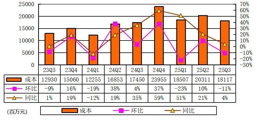 贝壳2025年第三季度营业成本总额为181亿元(25亿美元),较2024年同期为174亿元增加3.8%。