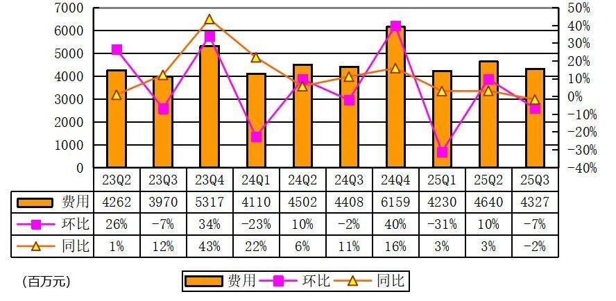 贝壳2025年第三季度费用为43.27亿元(约6.08亿美元),较上年同期的44亿元下降2%。