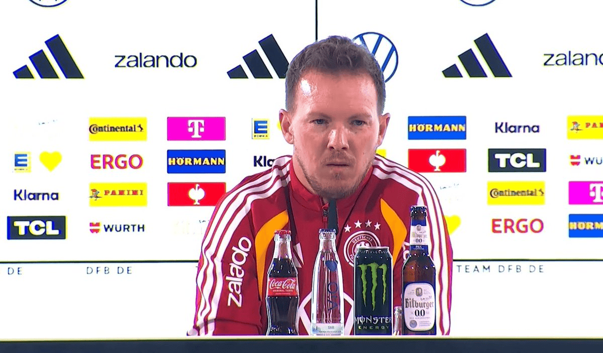 虎扑11月10日讯德国国家队主教练朱利安-纳格尔斯曼今天出席了新闻发布会。