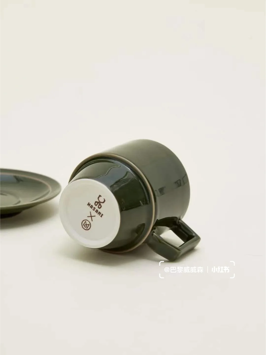 👉Monocle对于日本陶瓷品牌Hasami的喜爱,在其Monocle Cafe中,标配店内咖啡杯也是这个品牌。这款墨绿色的特别联名产品中,更有杯底的品牌号,值得收一个。