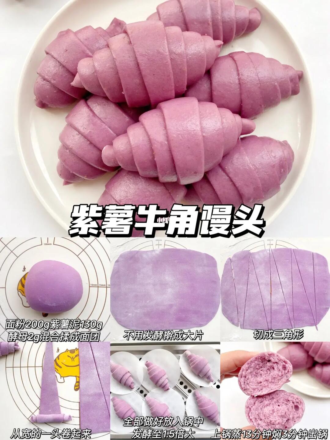 💜紫薯牛角馒头