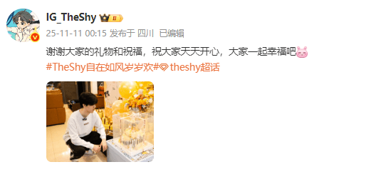 今天生日,TheShy:谢谢大家的礼物和祝福,大家一起幸福吧