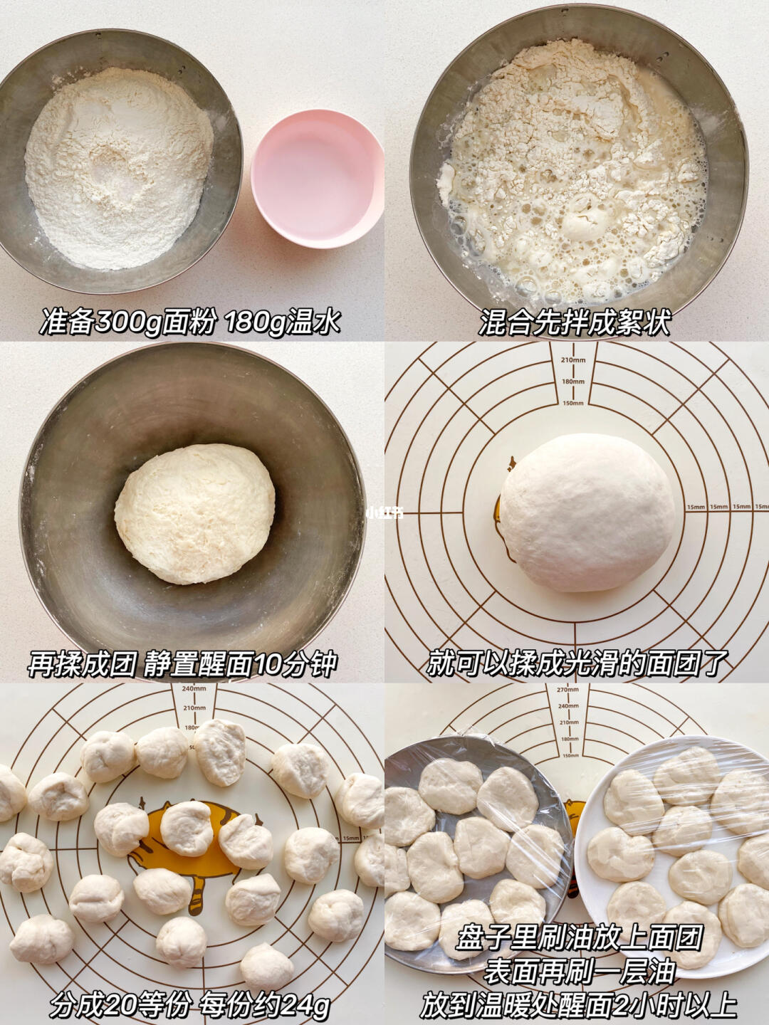 2⃣️把面团分成20份,约24g一个的小剂子,放入刷了油的盘中,在面团表面再刷一层油,盖上保鲜膜醒两个小时以上。