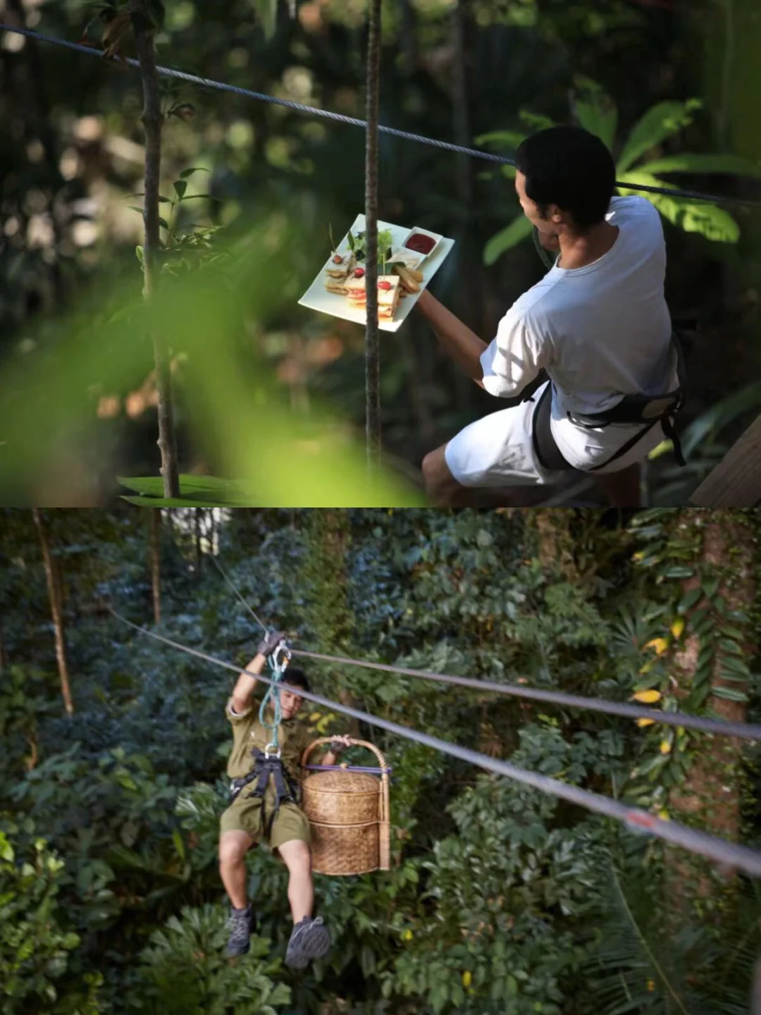 在树上用餐是什么感受?hoho今天种草的泰国的这家餐厅,大概是全世界唯一一家服务员需要佩戴安全带进行上菜的餐厅吧!