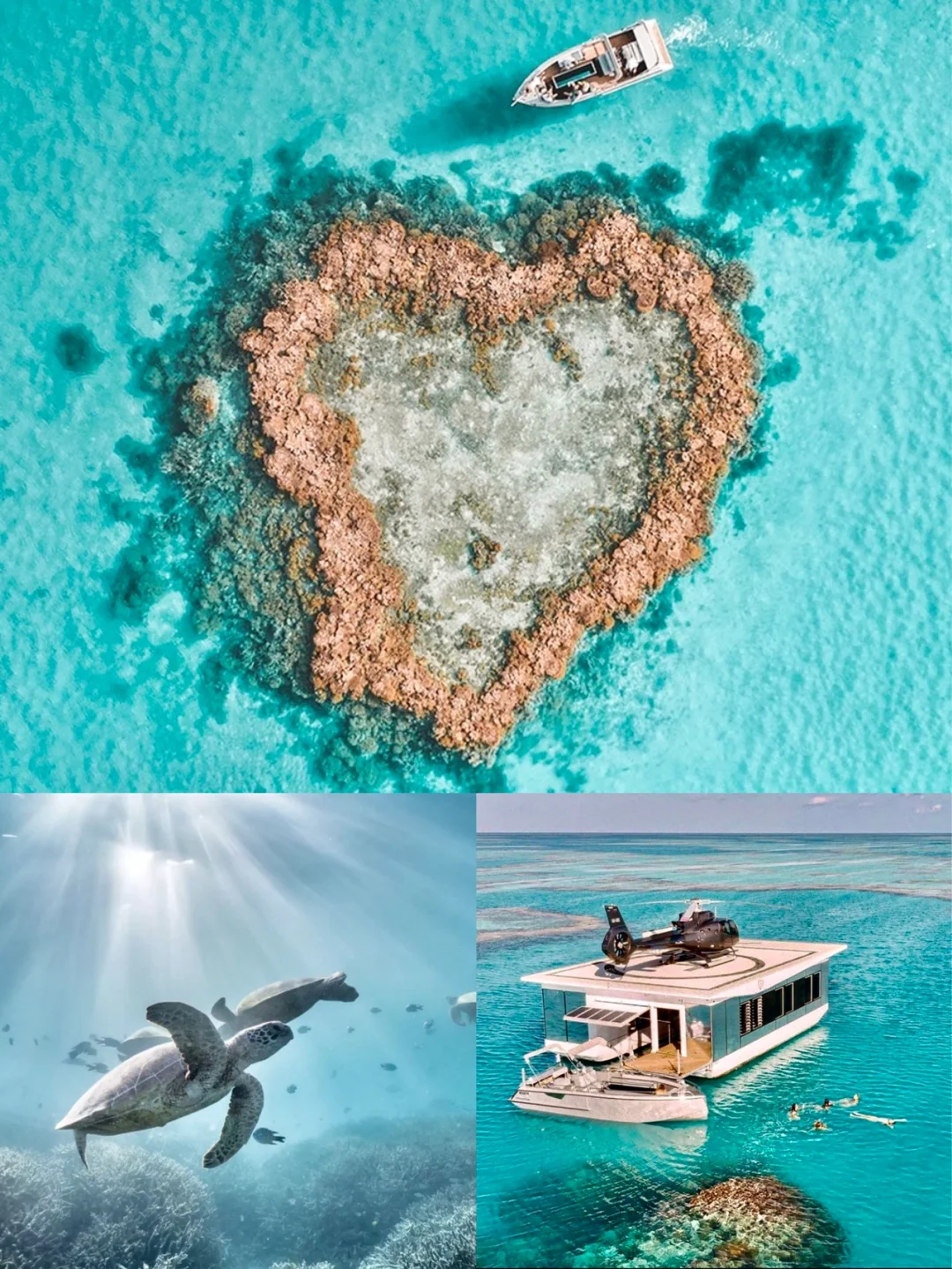 心形大堡礁 是游船不能靠近的,只能通过飞机观澜,并且在空中观澜才够壮观,才够浪漫!