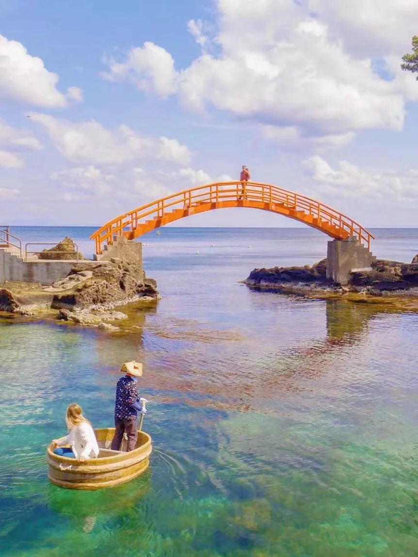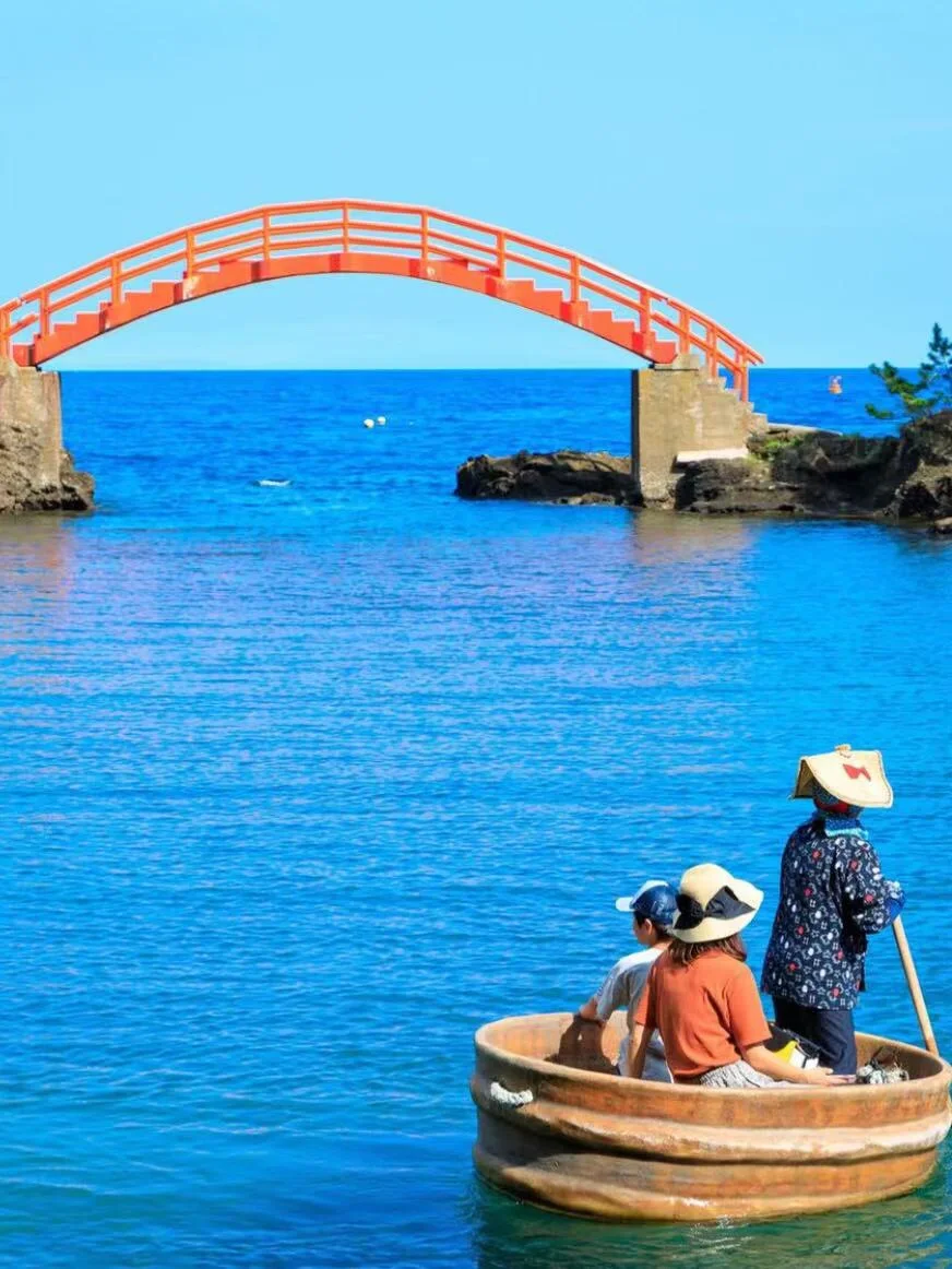 佐渡岛以其清澈见底的海水和岩石嶙峋的海岸而闻名,一定要尝试乘坐由穿着传统的当地人操纵的传统小船来一趟短暂的航行!佐渡岛可以体验盆舟的地方有三处:分别是小木港、矢岛、宿根木,但最美最出片的还是「矢岛体验交流馆」