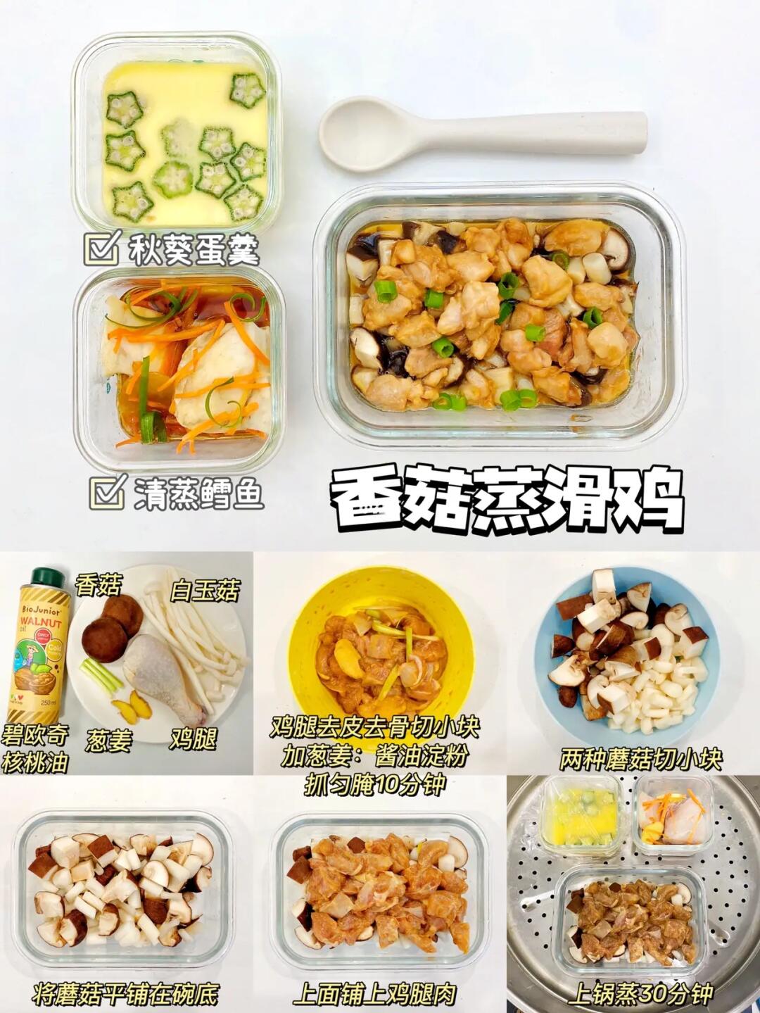 ☑️香菇蒸滑鸡+秋葵蒸蛋+清蒸鳕鱼