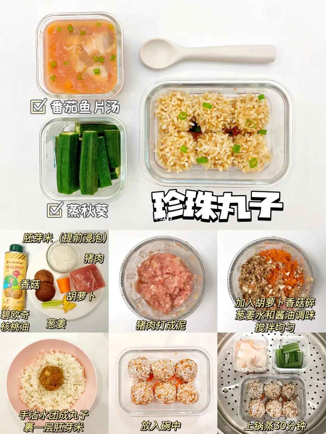 ☑️珍珠丸子+番茄鱼片汤+蒸秋葵