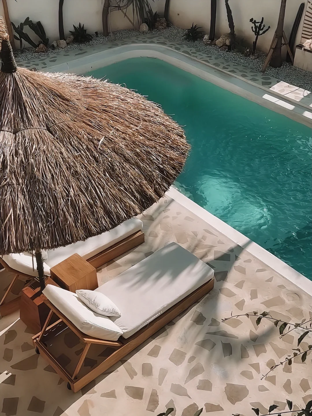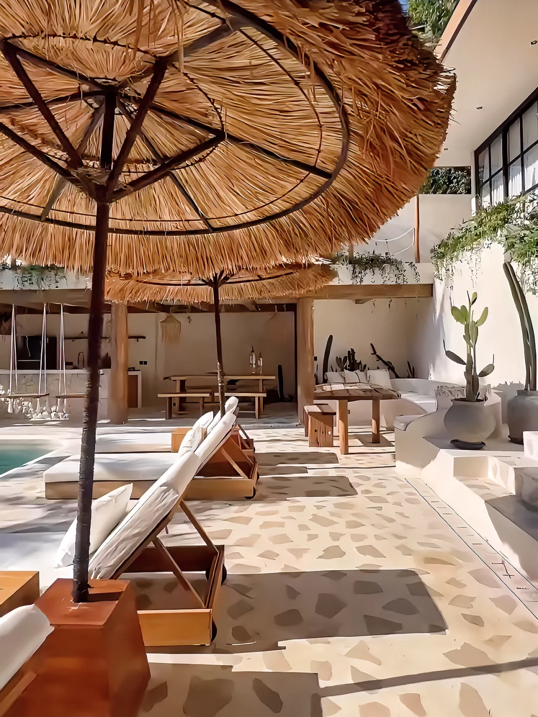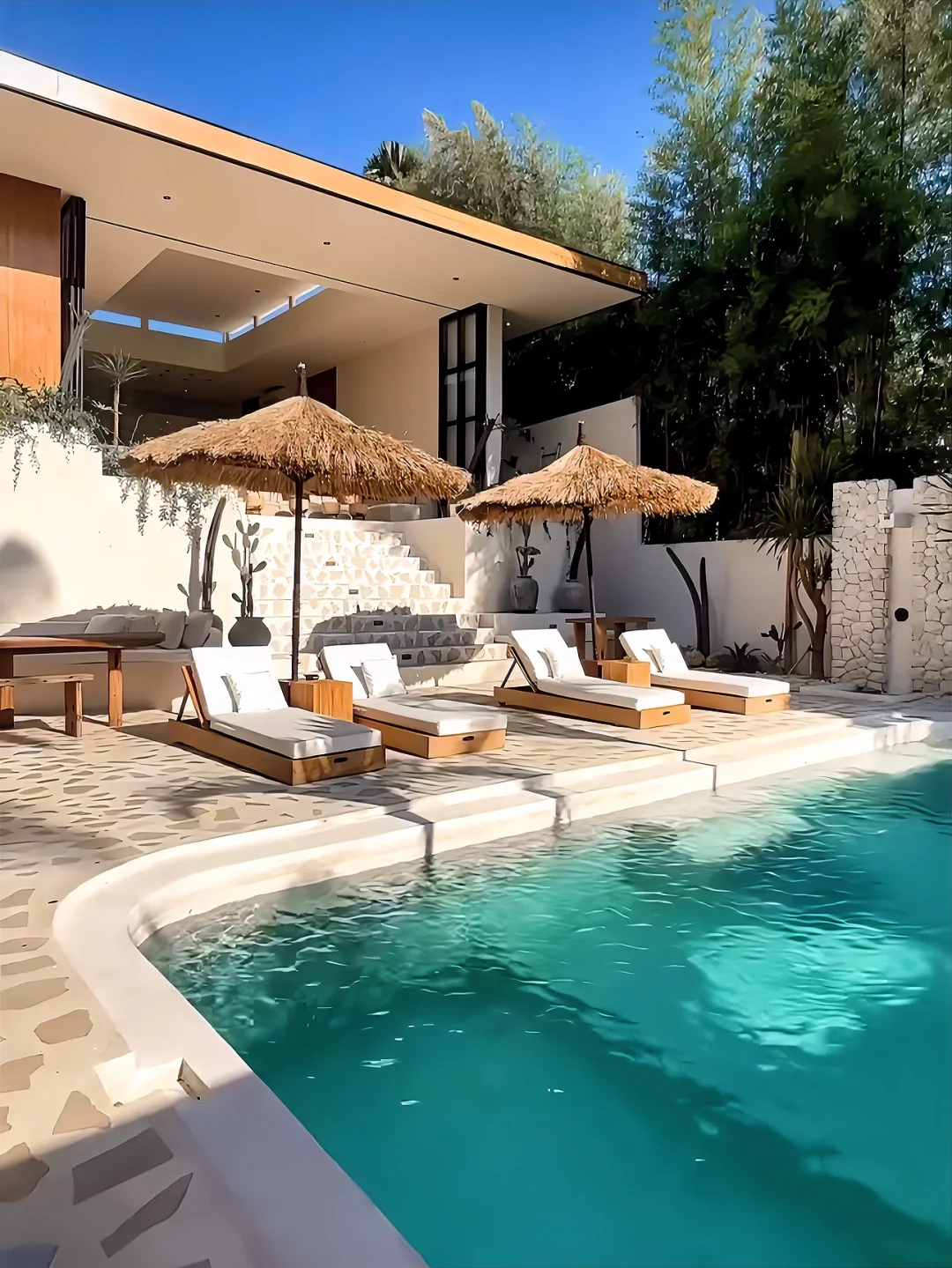 ▪️ 室外空间配有游泳池,以及带有日光浴床和凉亭的2层游泳池休息室,度假感十足