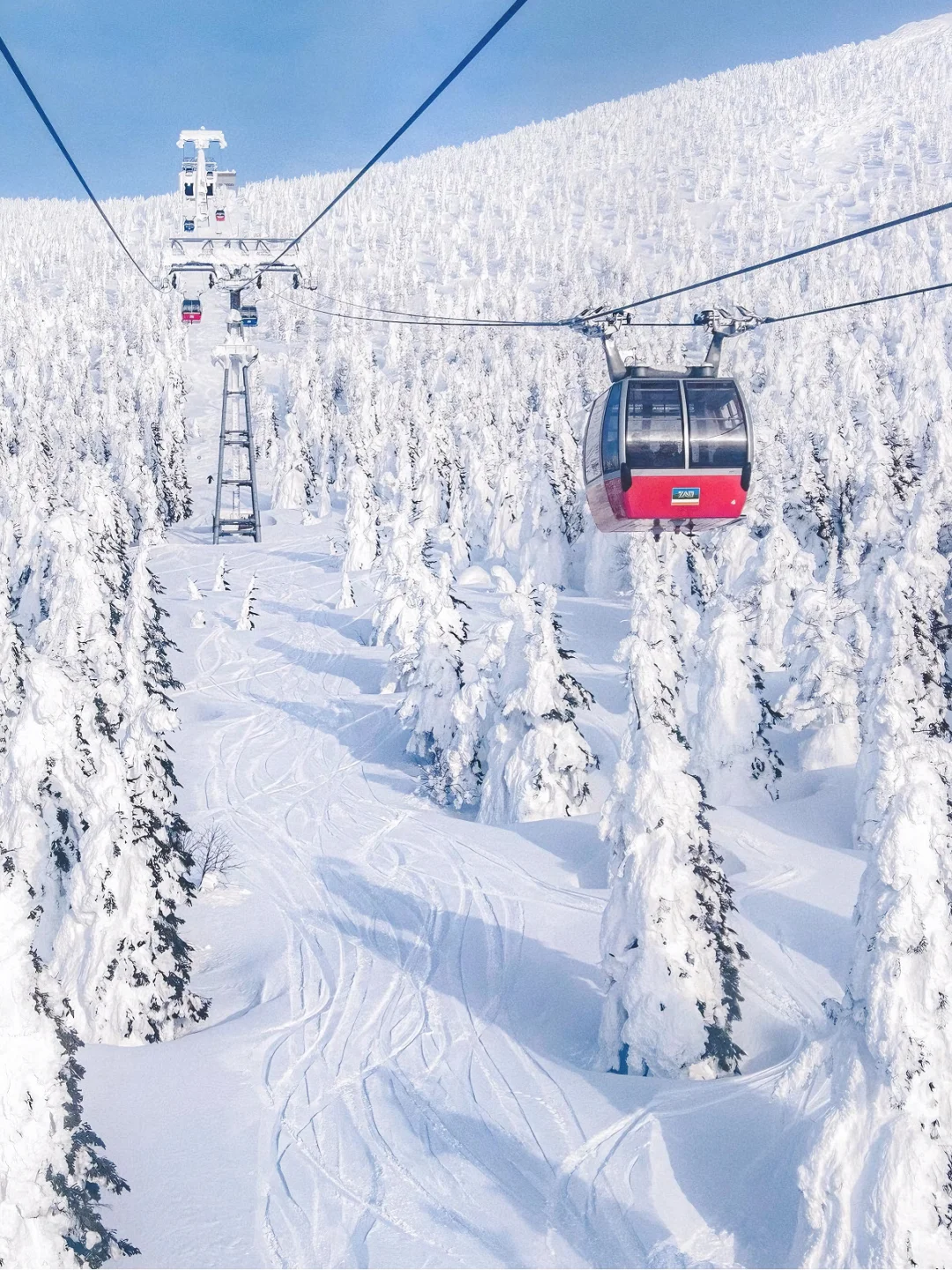 🔹从藏王山麓站到树冰高原站约7分钟,从树冰高原站到地藏山顶站约10分钟,藏王索道山顶线采用双轨、单轨自动循环缆车,俗称“Funitel”,即使在山区恶劣天气条件下也能安全稳定运行
