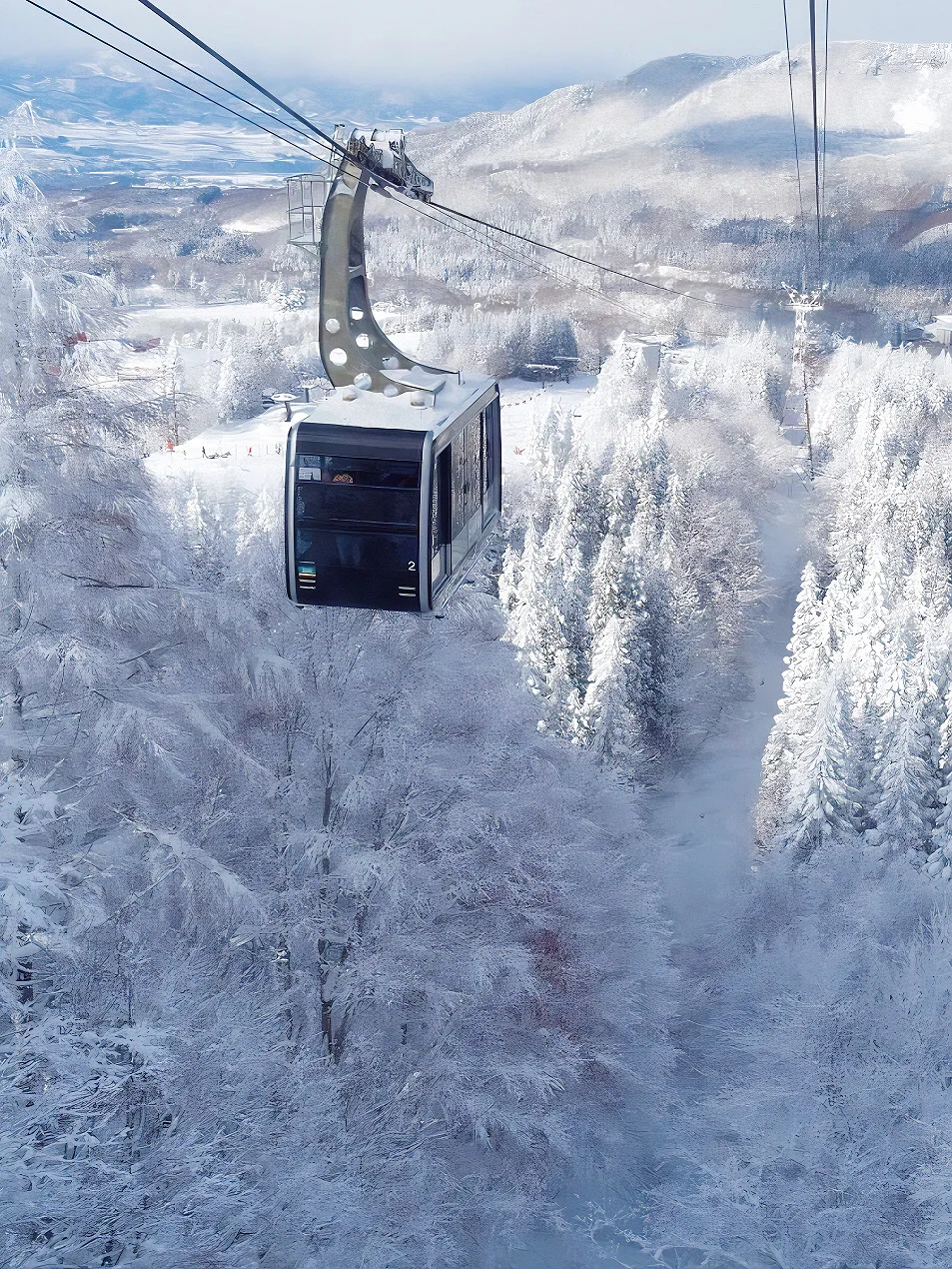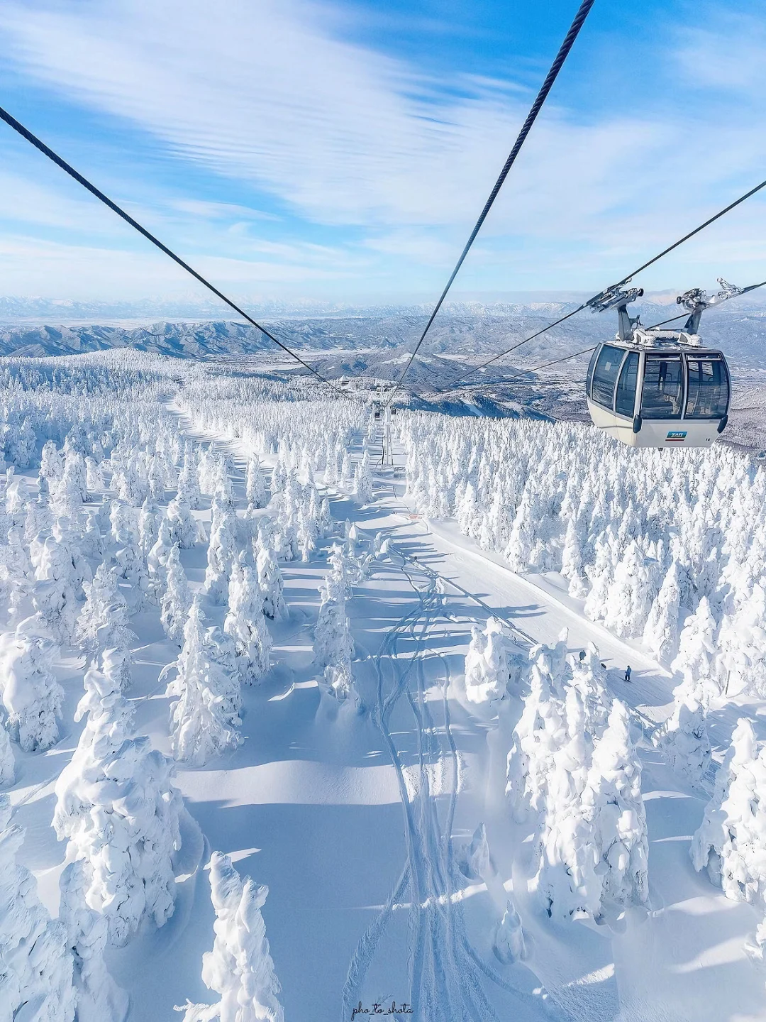 “藏王索道”是连接山形县“藏王山麓站”、“树冰高原站”、“地藏山顶站”的索道,冬天是滑雪者和喜爱雪景游客的天堂