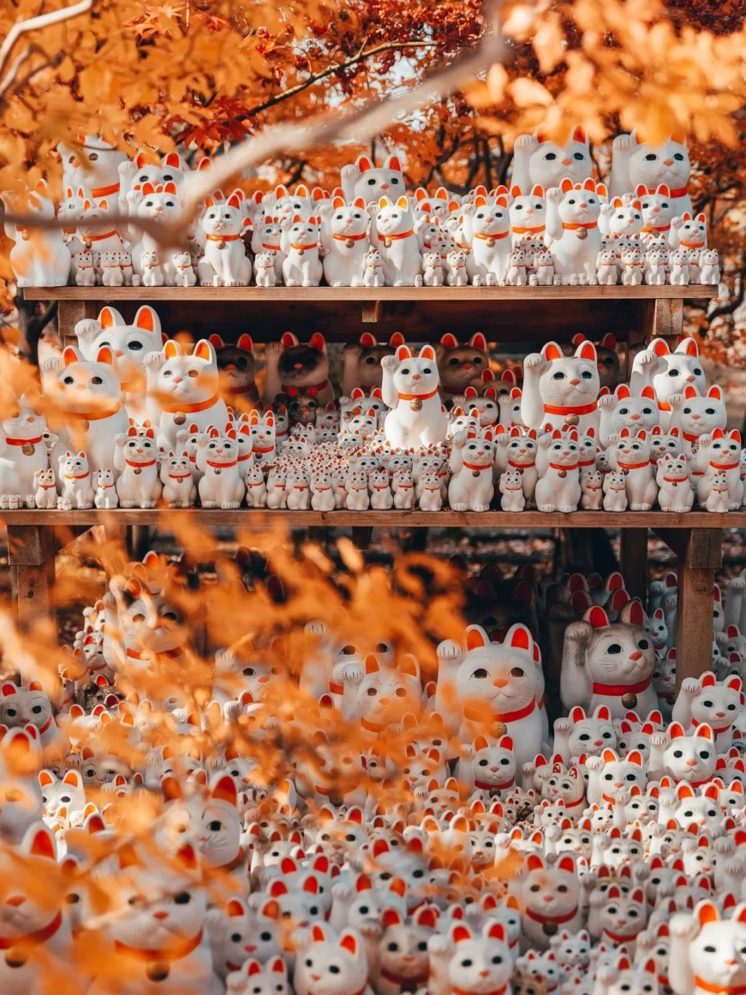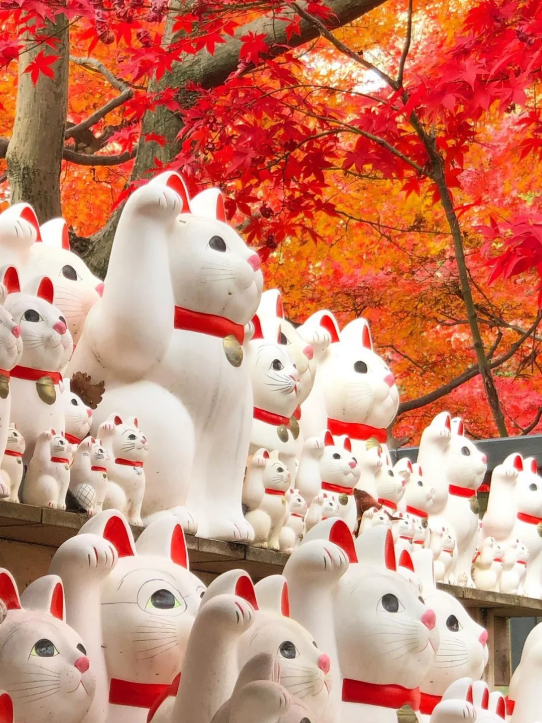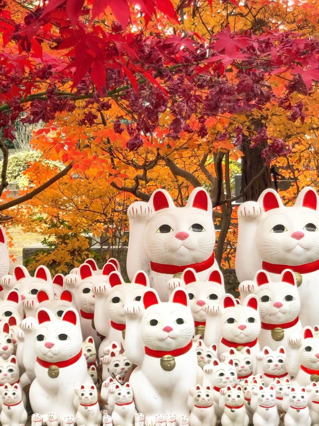 🔹寺内种植着樱花树,春天来这里可以欣赏满园樱花非常漂亮;另外秋天也是打卡这里的好时节,有机会拍到枫叶和招福猫一起的美景