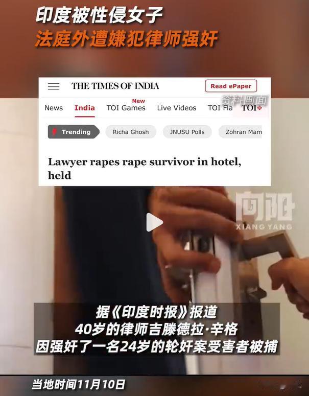 印度轮奸案受害女子遭代理律师强奸,在这起案件当中,本来这位24岁的印度女孩曾于2022年遭遇3名男子轮奸,已经惨遭不幸了。 没有想到,女孩在参加轮奸案听证会之际,被告代理人之一的代理律师以可以庭外调解为由,把女孩骗到了酒店实施了强奸,更可笑的是,该代理律师在逃跑时还摔断了腿。 虽然该律师已经被拘留,可是,从中我们不难看出,强奸案在印度的发生率实在太高了,这是能够爆出来的,还有很多没有报道的,没有被关注的。 这一方面说明,印度的女性在社会上的地位很低,他们对于女性的保护形同虚设;另一方面此类案件的频发也说明,印度在打击强奸犯罪方面的力度实在微不足道。只有真正提高女性在社会上的地位,重视女性权利的保护,才能从根本上减少或者消除此类案件的频发,这对于印度来说,并不是短期内能够解决的现实问题。