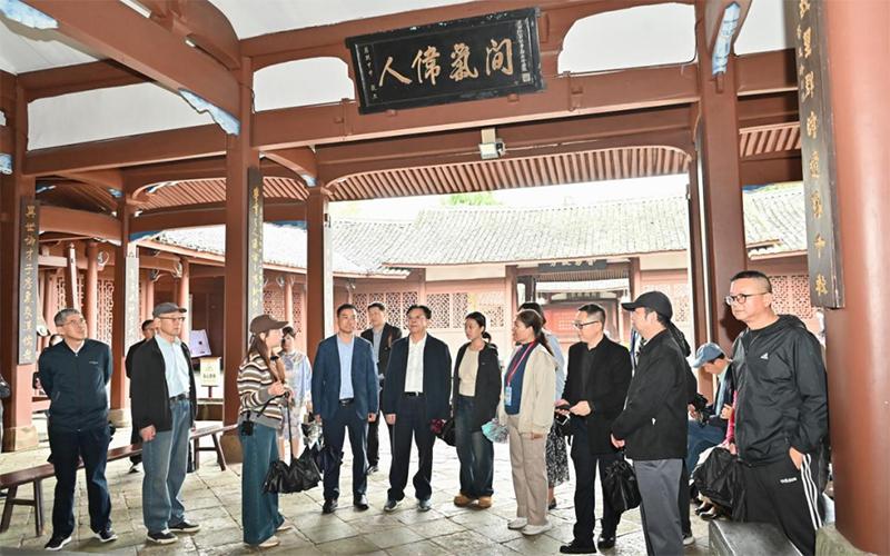 专家学者们先后走进全国重点文物保护单位刘基庙以及刘基故居、武阳书院等地。在刘基庙内,大家紧随讲解员的脚步,聆听刘伯温生平事迹、政治功业与思想成就介绍,不时驻足观看碑刻、匾额与历史陈列。