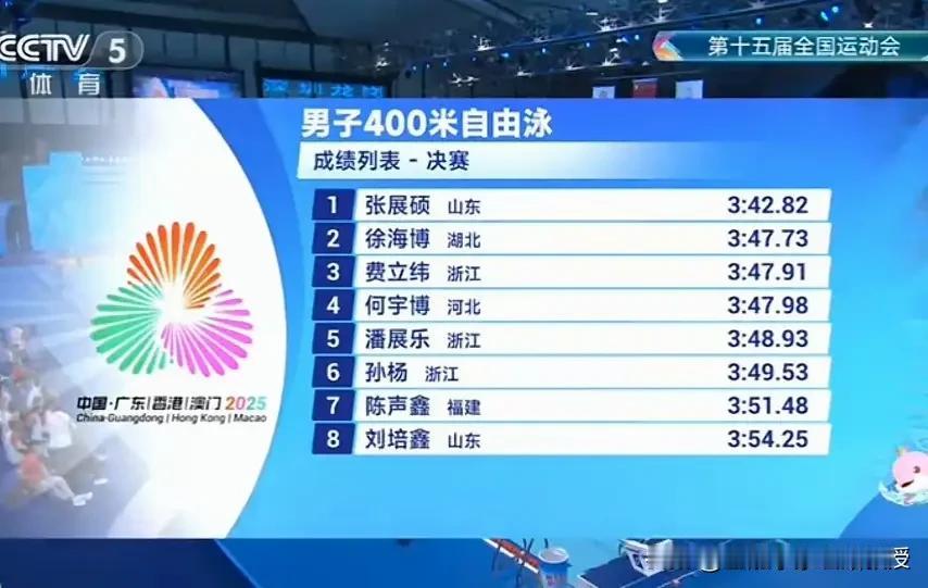 这次全运会游泳比赛最大的看点就是,不再是“江浙沪”包游,也不再是名次一成不变,这就是竞技比赛的魅力所在。400米自由泳决赛,夺冠大热门孙杨和奥运冠军潘展乐竟然位列第五第六,山东队的张展硕竟然拿了第一,山东队这次在首个游泳比赛日和浙江队都拿了两块金牌,可谓是势均力敌。 在大家的印象中,好像浙江队的实力始终是全国第一,但是没想到这次山东队却异军突起。在竞技比赛中没有什么强者恒强,永远第一,只有十年磨一剑,不断突破,后来者永远有机会。大家别忘了,不止浙江靠海,山东也靠海,游泳人才济济也是情理之中。