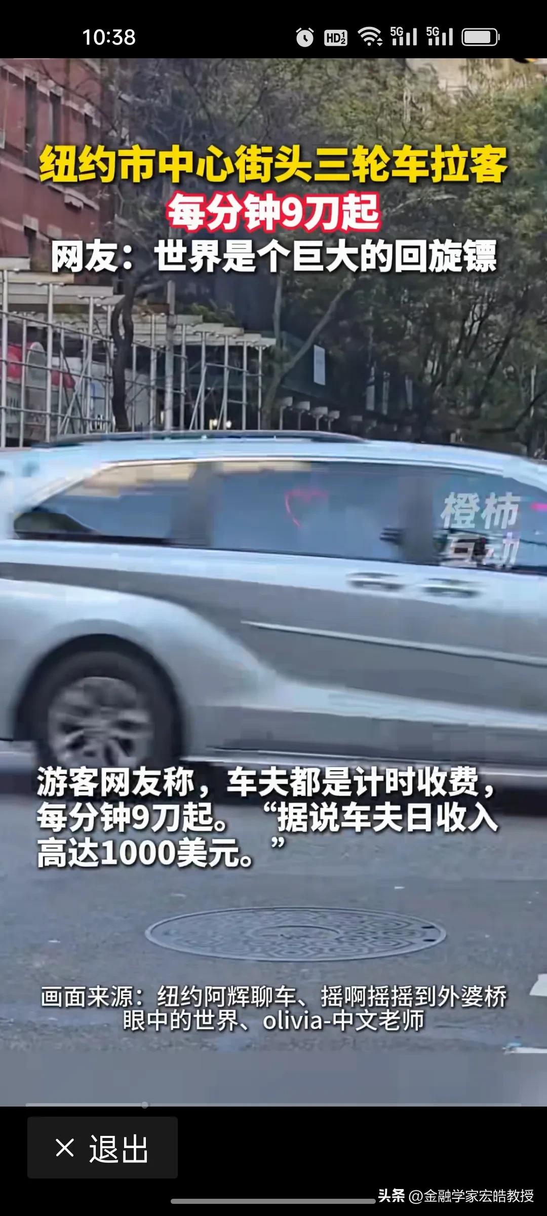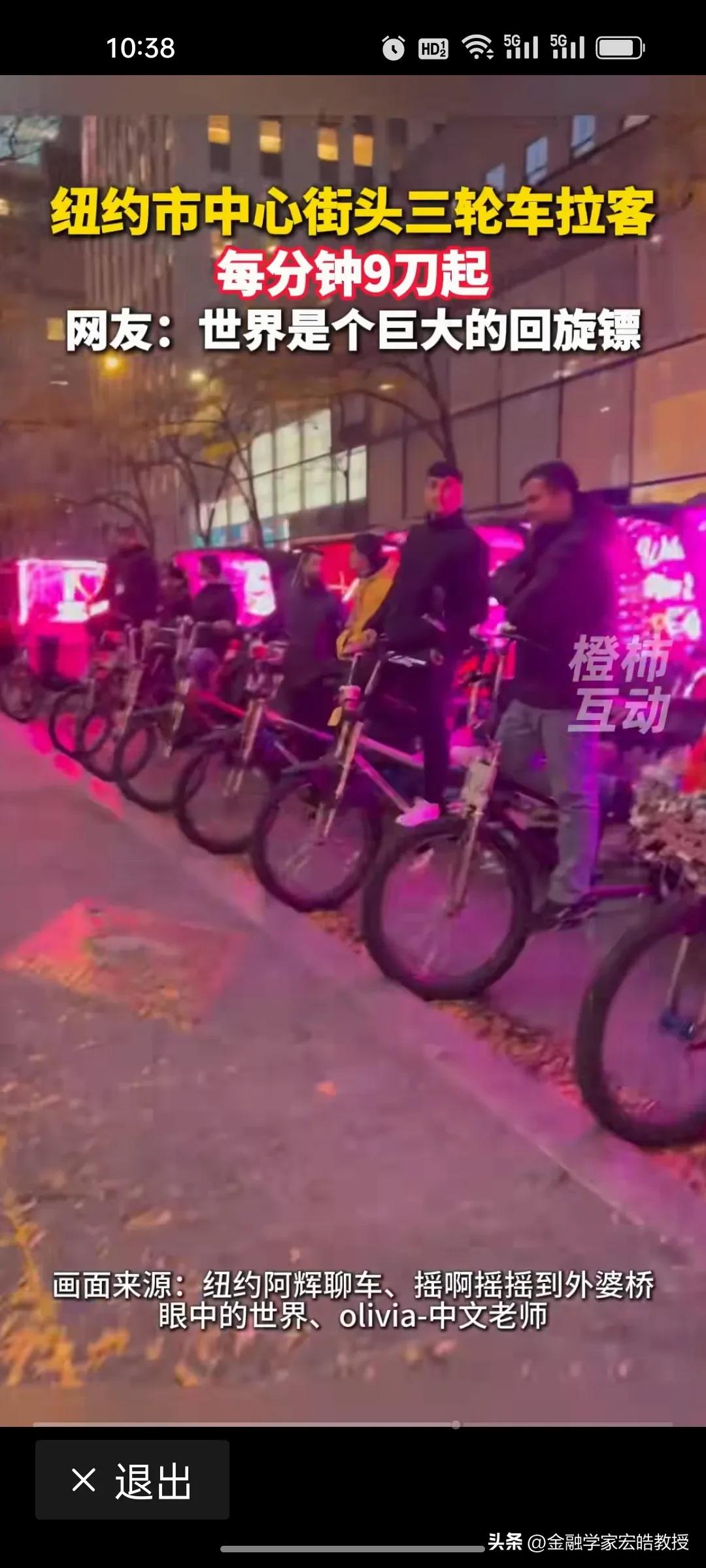 老舍笔下的骆驼祥子做梦也不会想到,重生之我在大洋彼岸纽约拉洋车。看下图,一排整整齐齐的纽约市中心三轮车在等待拉客,这些车都被装饰得很漂亮,车上的玩偶还可以单独售卖。不过,坐这车价格还挺贵,每分钟9美刀,车夫日收入可高达1000美元,只要够努力,不用等三年,车夫每天收入都能买一辆三轮车。