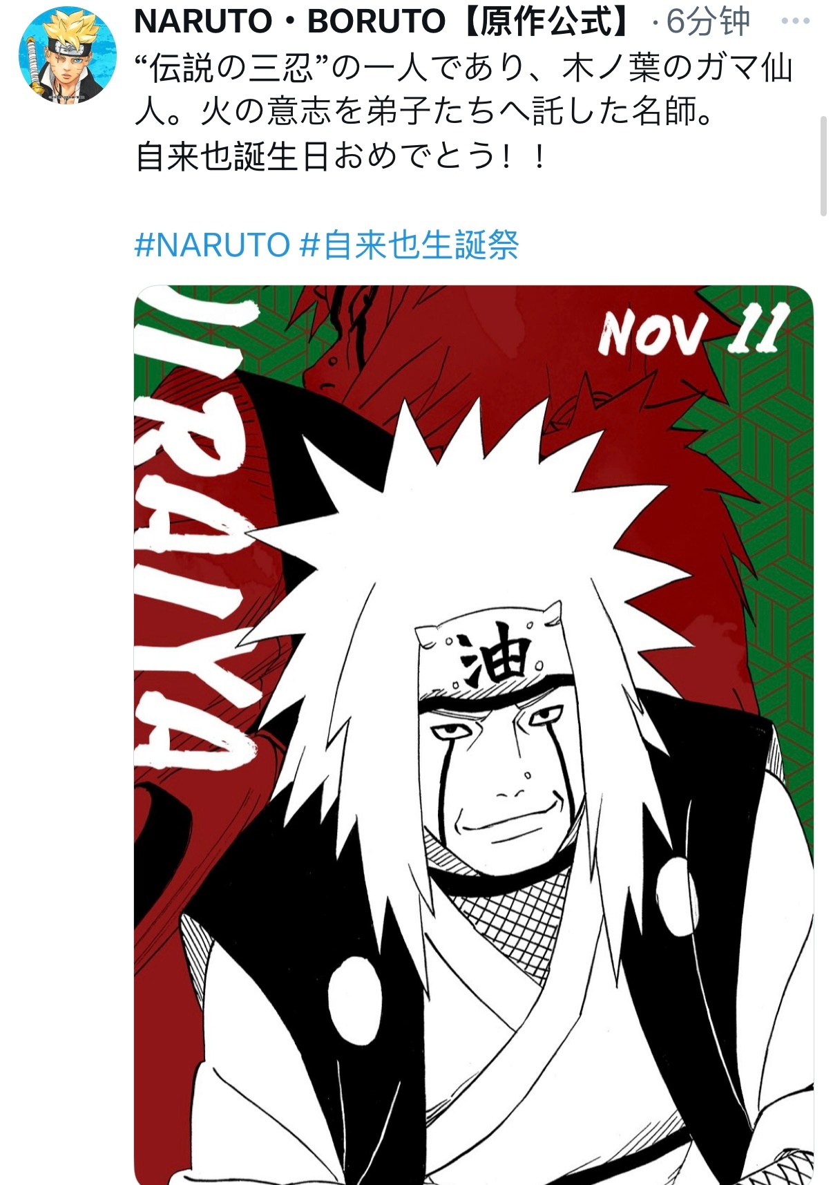 【火影忍者官方最新发布人物生日贺】“传说中的三忍之一”木叶村的蛤蟆仙人。一位将火