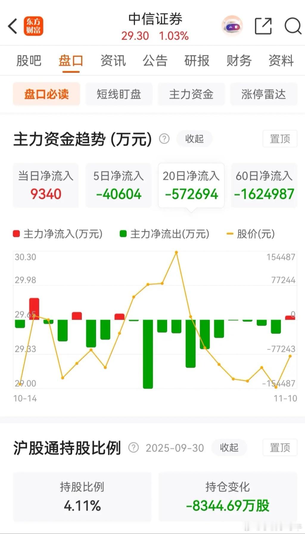 中信证券今天的走势同东财一样,收盘时上涨了约1.03%,当前的报价为29.30元。在资金流向上,终于止住了连续十一天下跌的态势,今天被主力资金净买入了0.9340亿元,近五个交易日则是合计净卖出了4.0604亿元。从走势上看今天尾盘再次被大单压盘,而日线级别上股价也是被均线压制。
