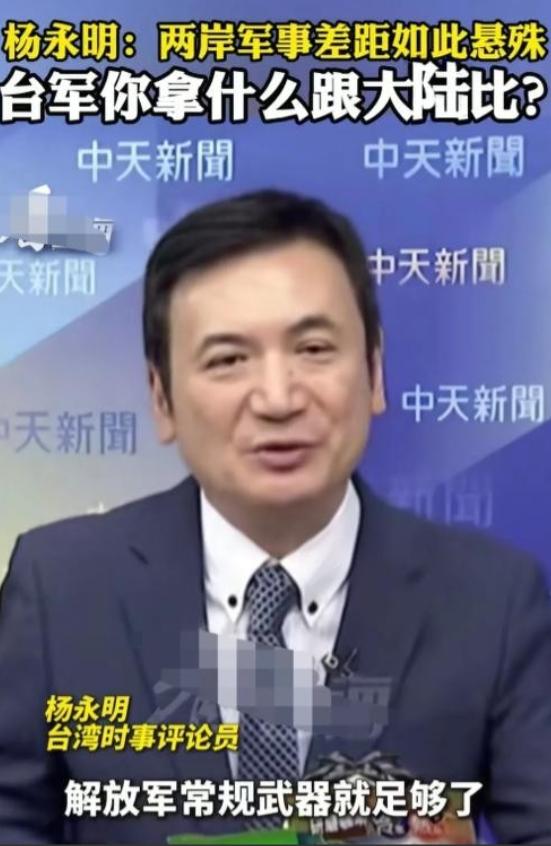 台湾省时事评论员杨永明在岛内节目上说到:两岸如果真的走到要动武的那一天的话,对于