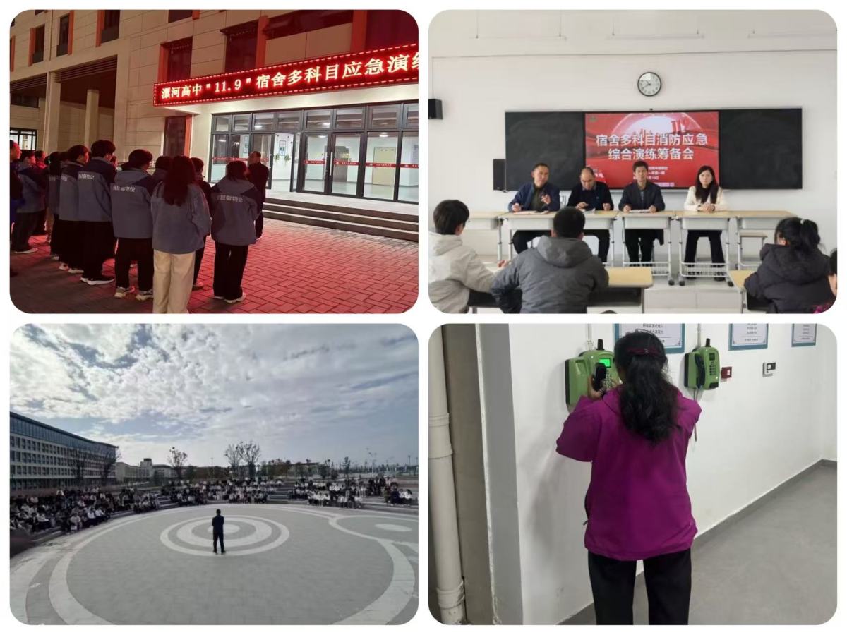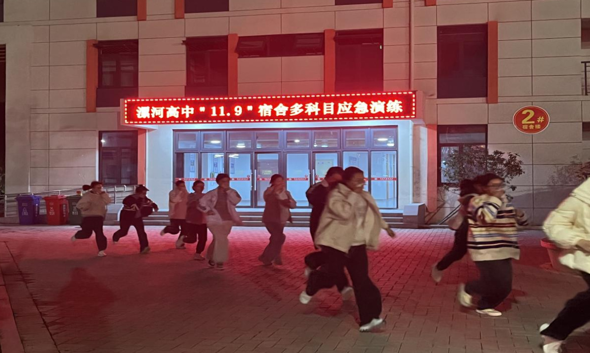 为宣传普及消防法规和消防知识,切实强化高一年级住校生的消防安全意识,培养师生应急自救互救能力,筑牢校园安全防线,11月10日晚上6:30,漯河市高级中学西校区顺利举行高一年级宿舍多科目消防应急综合演练活动,正式揭开2025年“11·9”消防宣传月活动的序幕。