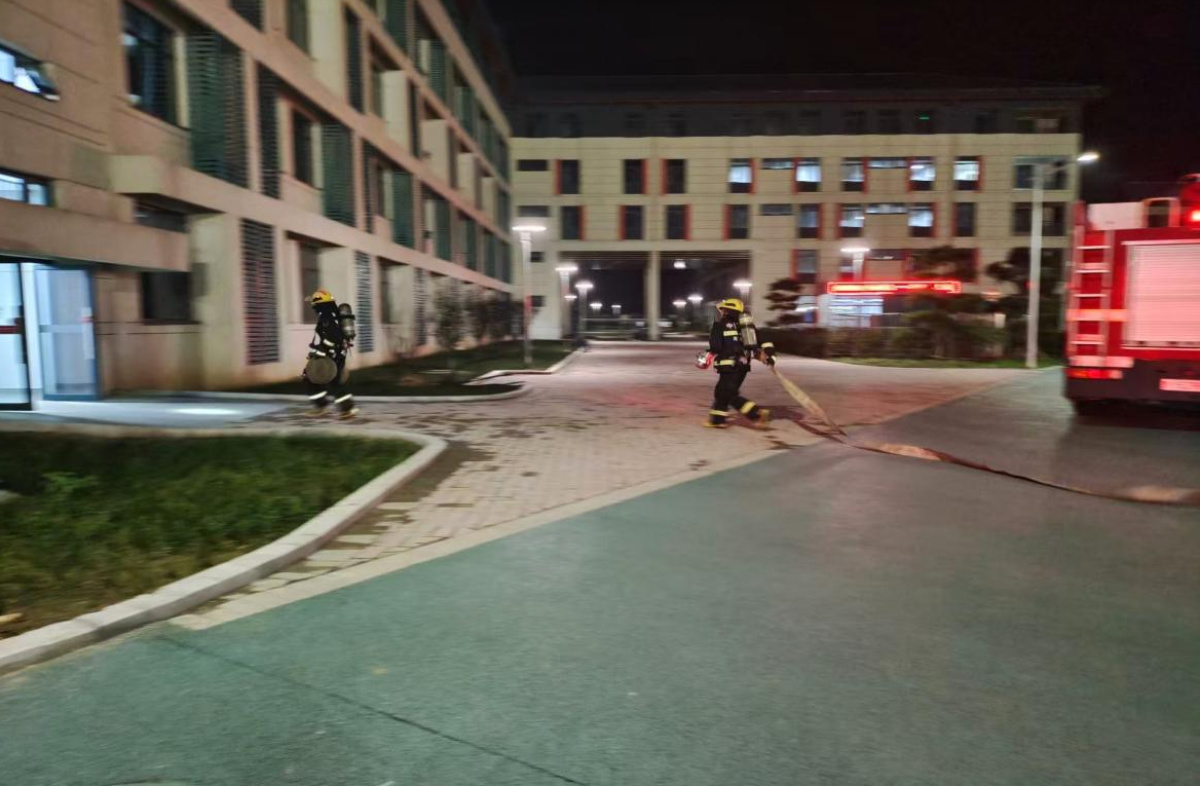晚上6:30,消防警报准时响起,演练正式启动。发现“火情”后,宿管员第一时间拨打“119”消防紧急救援电话。西城区消防救援大队丹江路消防救援站接警后火速出警,三辆消防救援车快速抵达漯河市高级中学西校区宿舍区域。