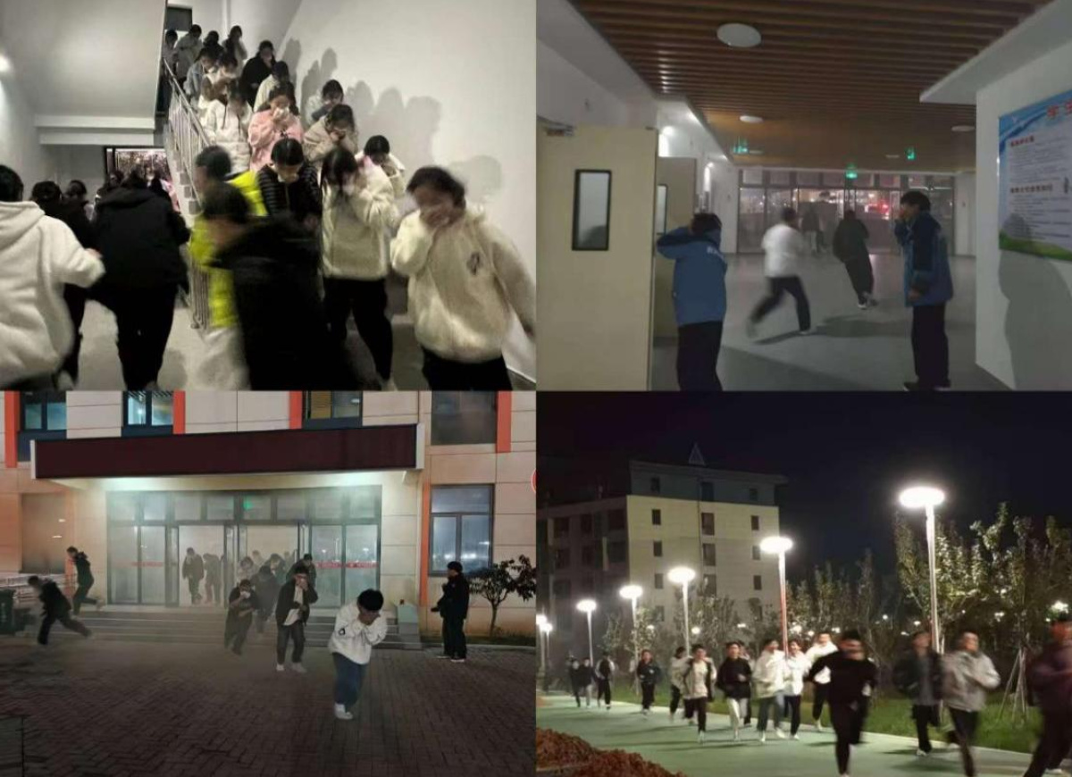 在志愿者教师与宿管员的有序引导下,一、二层低楼层学生迅速用湿毛巾捂住口鼻,保持弯腰俯身姿势,沿指定消防通道快速有序撤离;撤离过程中,全体学生全程保持安全间距、不推不挤,仅用一分钟便安全抵达田径场集结点。