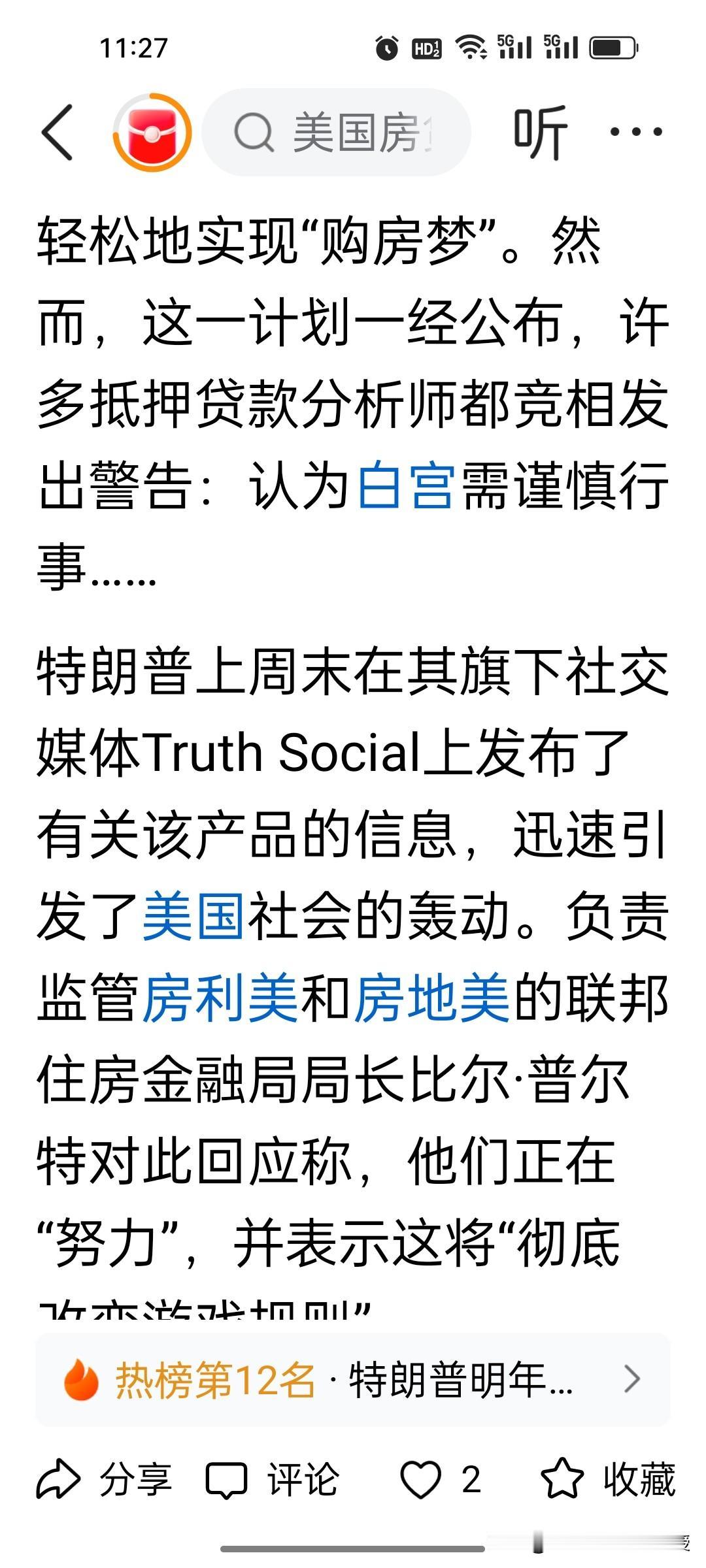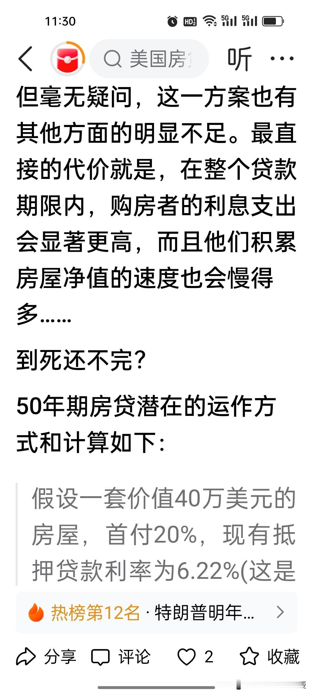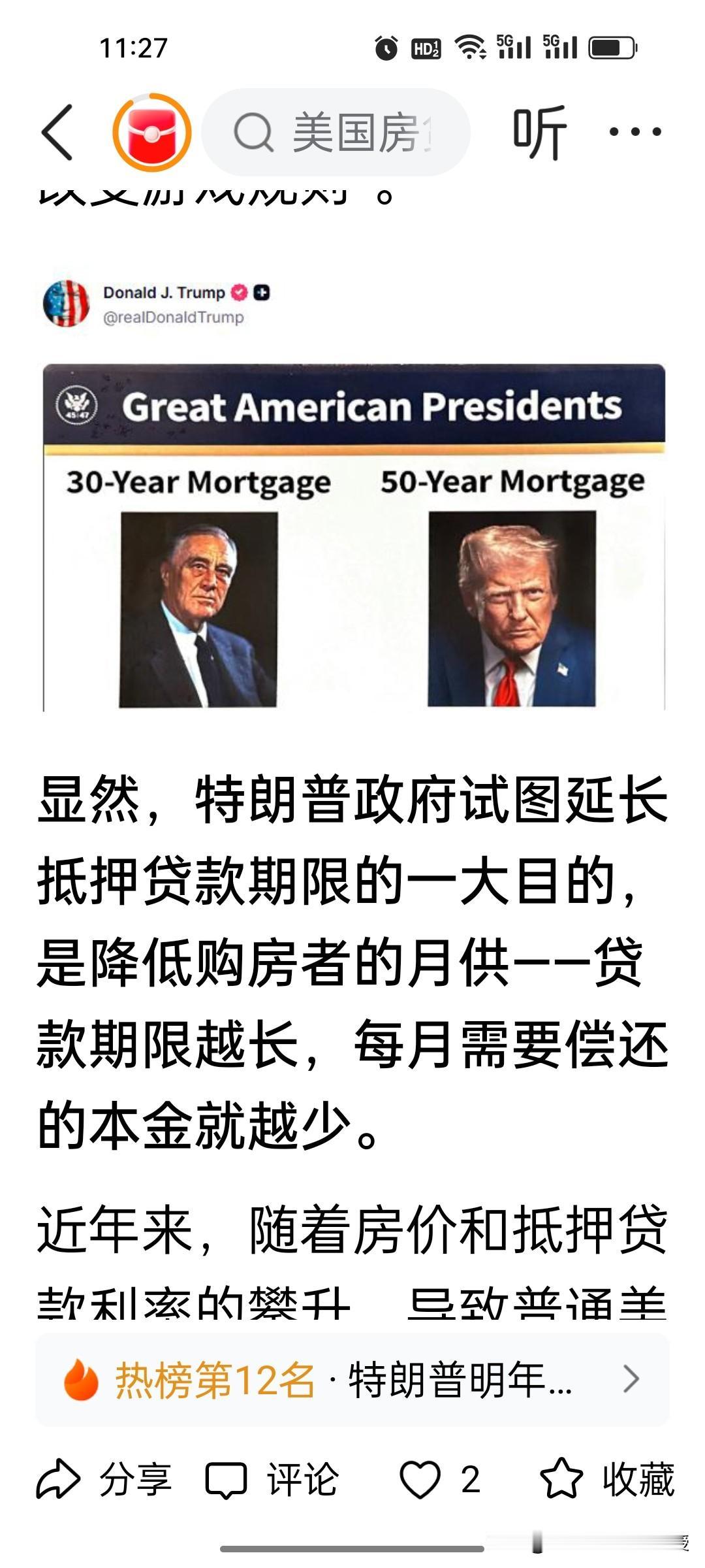 特朗普要推出50年房贷,他真的将自己对于房地产的认知开发到极致! 特朗普又出招了,要让购房者减轻购房压力,帮美国人实现购房梦,拟推出50年房贷,中国最长也没超过30年,美国人购房平均年龄本来都很晚,基本在40岁左右,现在能贷款50年,那就是要还到90岁,得跟巴菲特一样长寿才行,而且还得有持续还款的能力,总体上50年要还的利息会更多,房子还贬值了。在民众看来,还是特朗普上周说给民众发2000美元关税钱更实在。